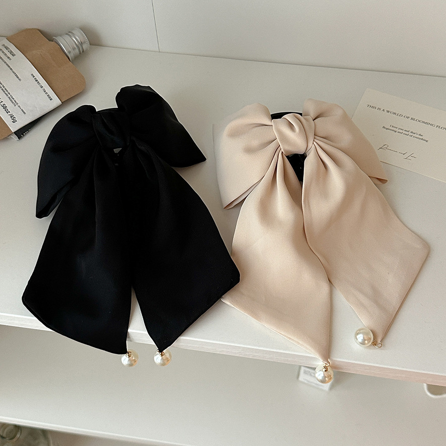 ヘアクリップ|エレガント・ポニーテールクリップ・大きなリボン・パール・ヘアアクセサリー・気品ある