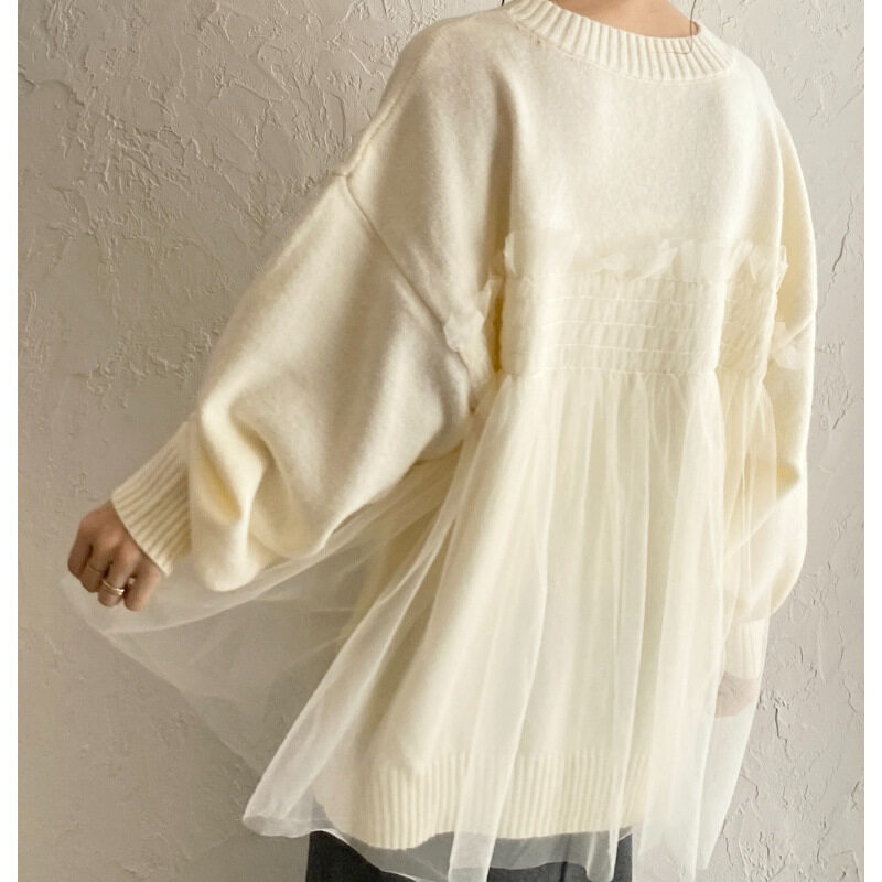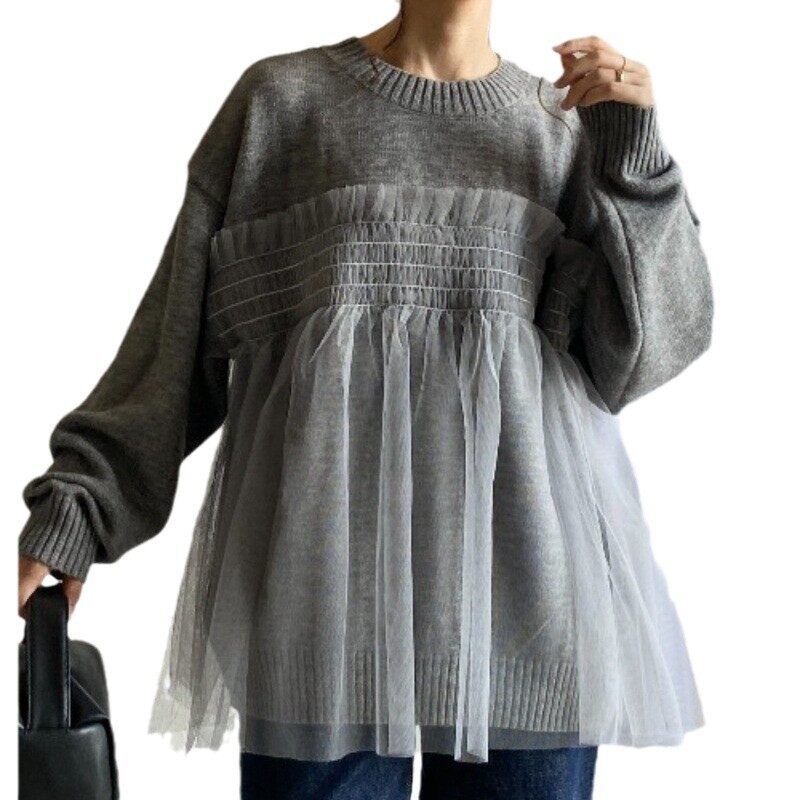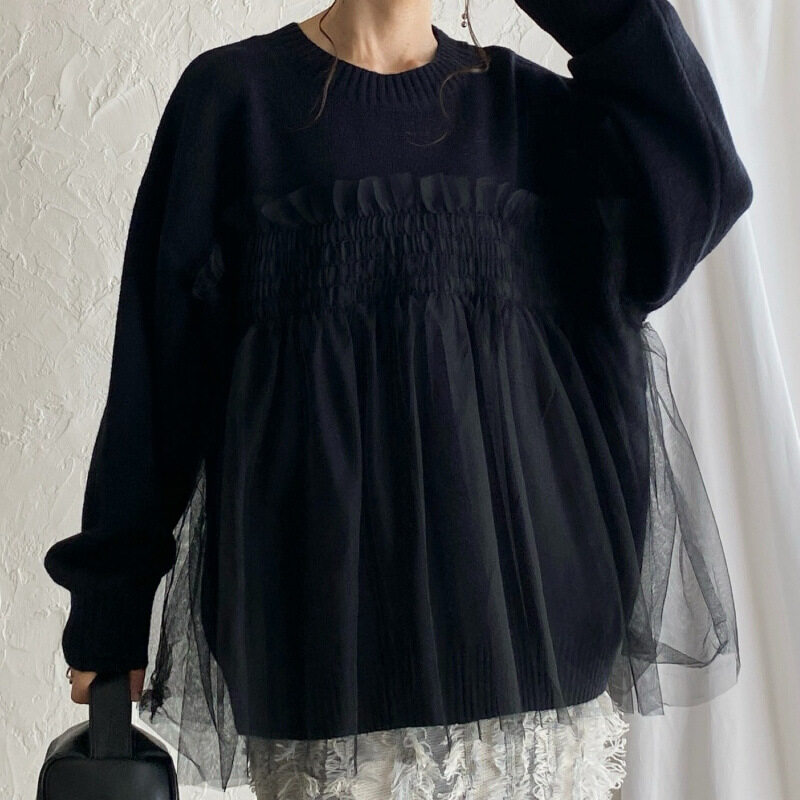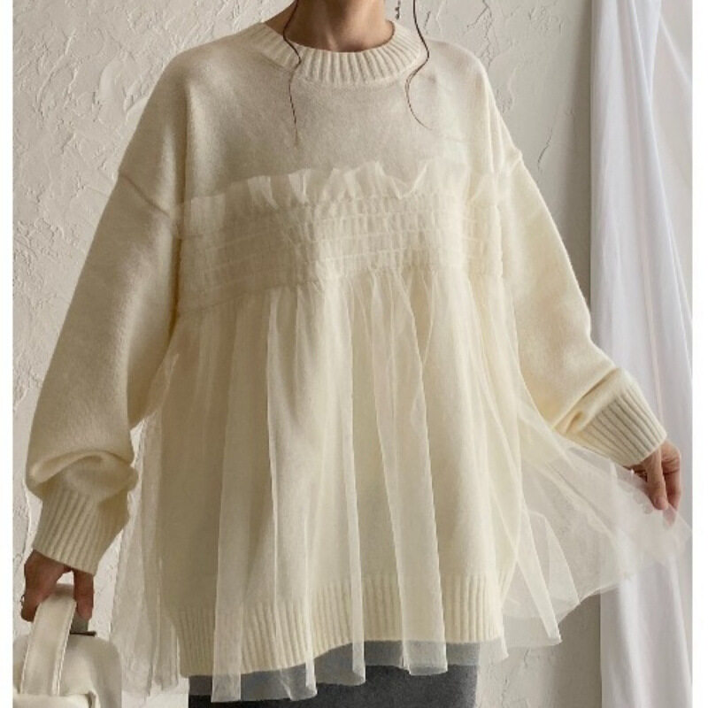 吉ニットセーター|ファッション・カジュアル・秋冬・刺繍・フェイクレイヤード・エレガント