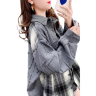 サイズ感と腕のポワン袖は気に入りました。 生地は薄いのですが、見た目はちょっと秋冬素材な感じです。チェック柄のとこが少しモフモフの素材です。 黒の部分はもしかしたら毛玉が出来やすいかもしれません。ボタンの1つが尖ってる部分がありました。