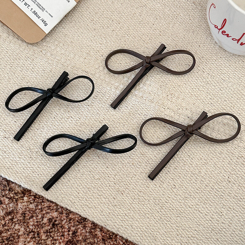 ヘアクリップ|ヘアアクセサリー・韓国風・黒・レザー・バタフライ・クリップ・サイド・前髪・おしゃれ