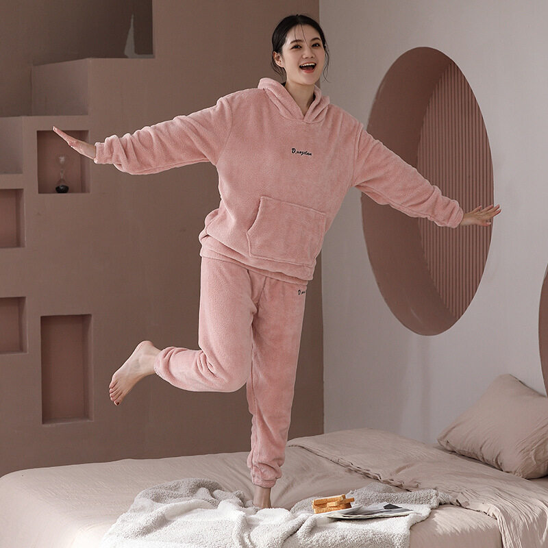 吉セットアップ|フード付き・コーラルフリース・秋冬用・裏起毛・ポケット付き・袖口ゴム・ルームウェア・スポーツウェア・おしゃれ