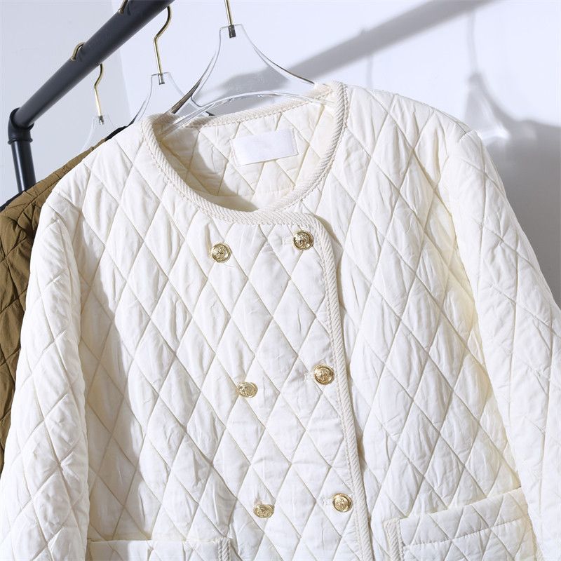 吉ショートコート|ルーズ・ファッション・レディース・菱形キルティング・ダブルボタン・秋冬用・韓国風