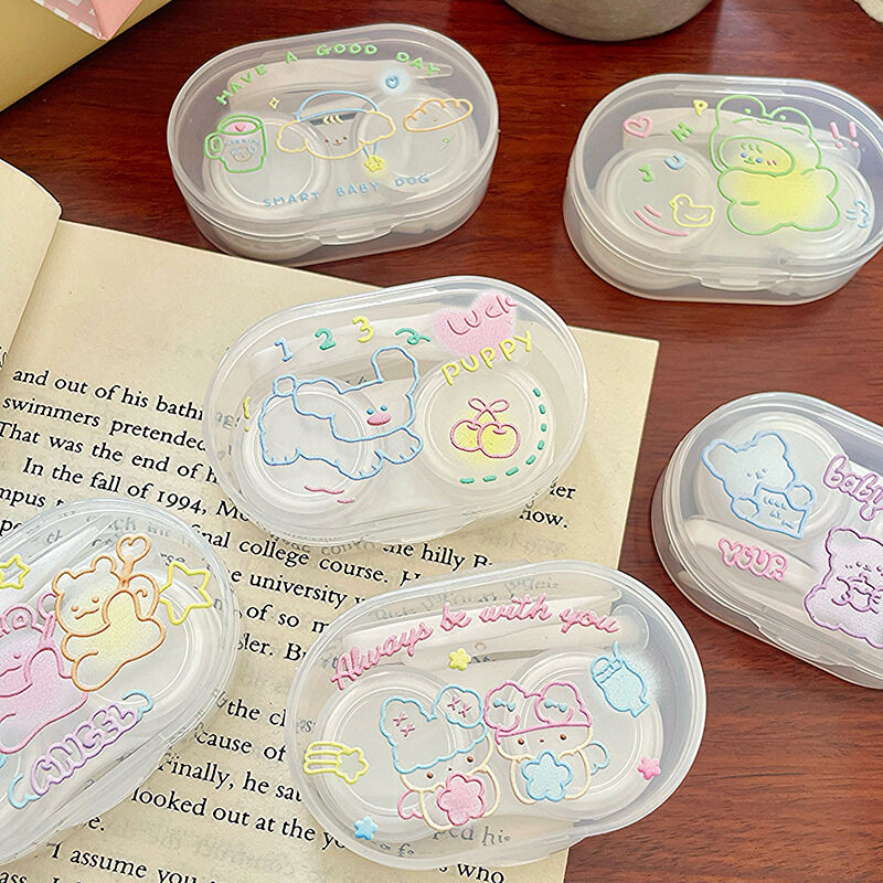 カラコンケース|カラフルライン・可愛い・カートゥーン・クマ・犬・天使・星・シンプル
