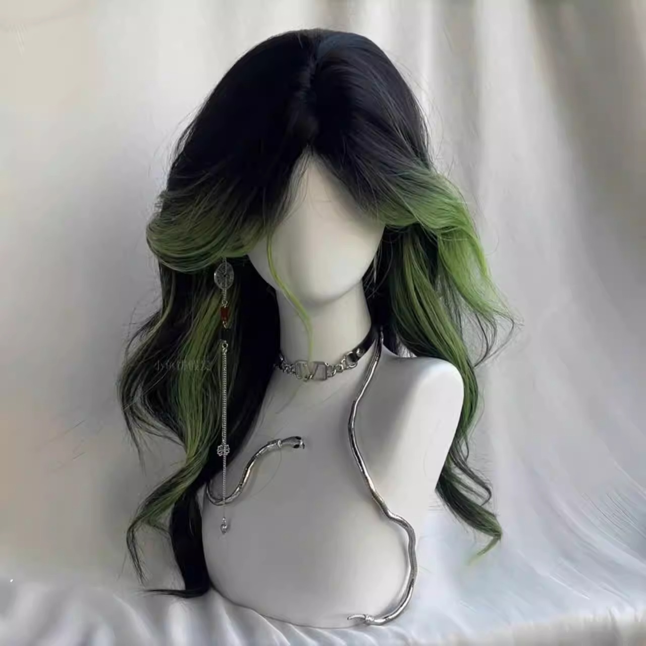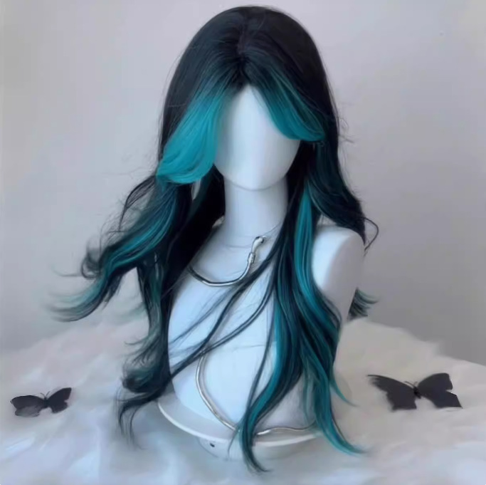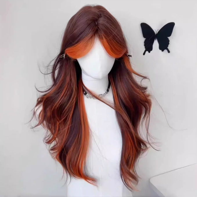 ウィッグ|グラデーション・ハイライト・センター分け・八字前髪・ロング・カール・コスプレ