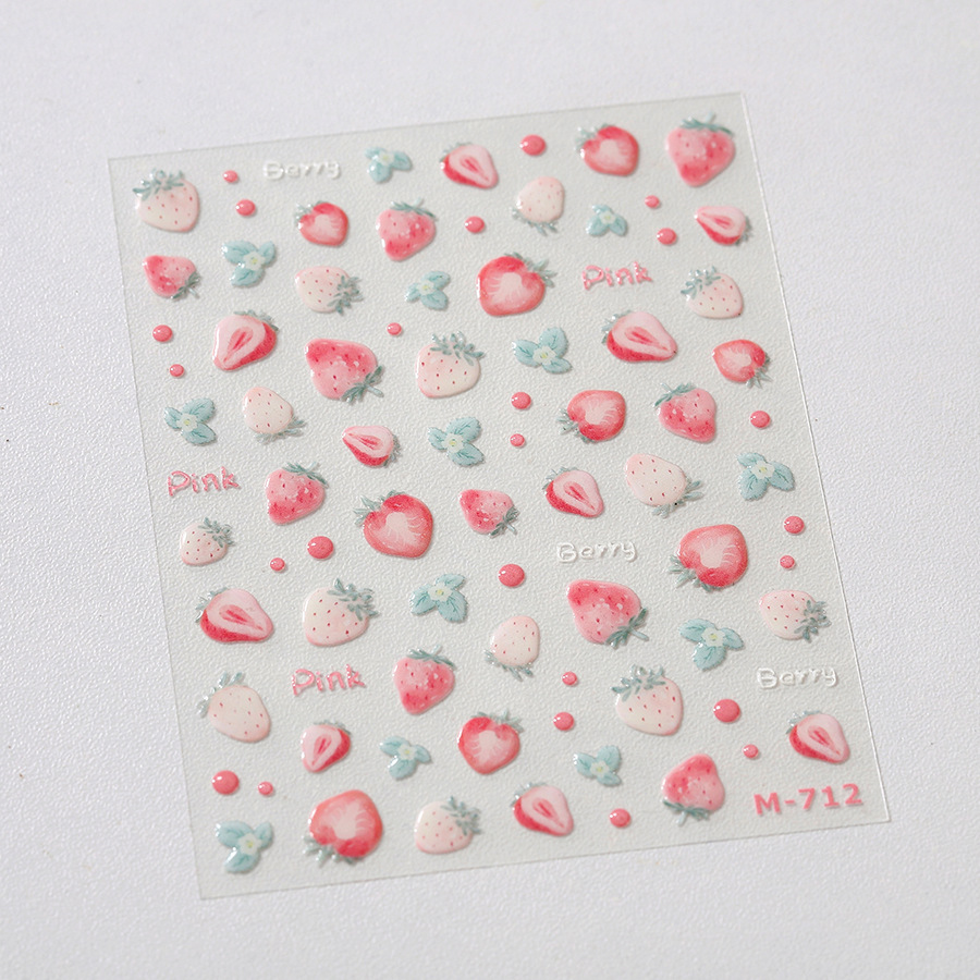 ネイルステッカー|ネイルシール・イチゴ・可愛い・ドット・ピンク・果物・薄い・葉