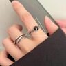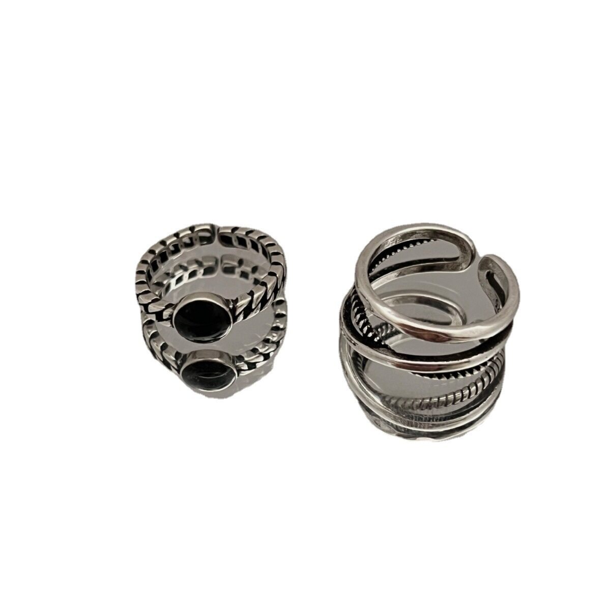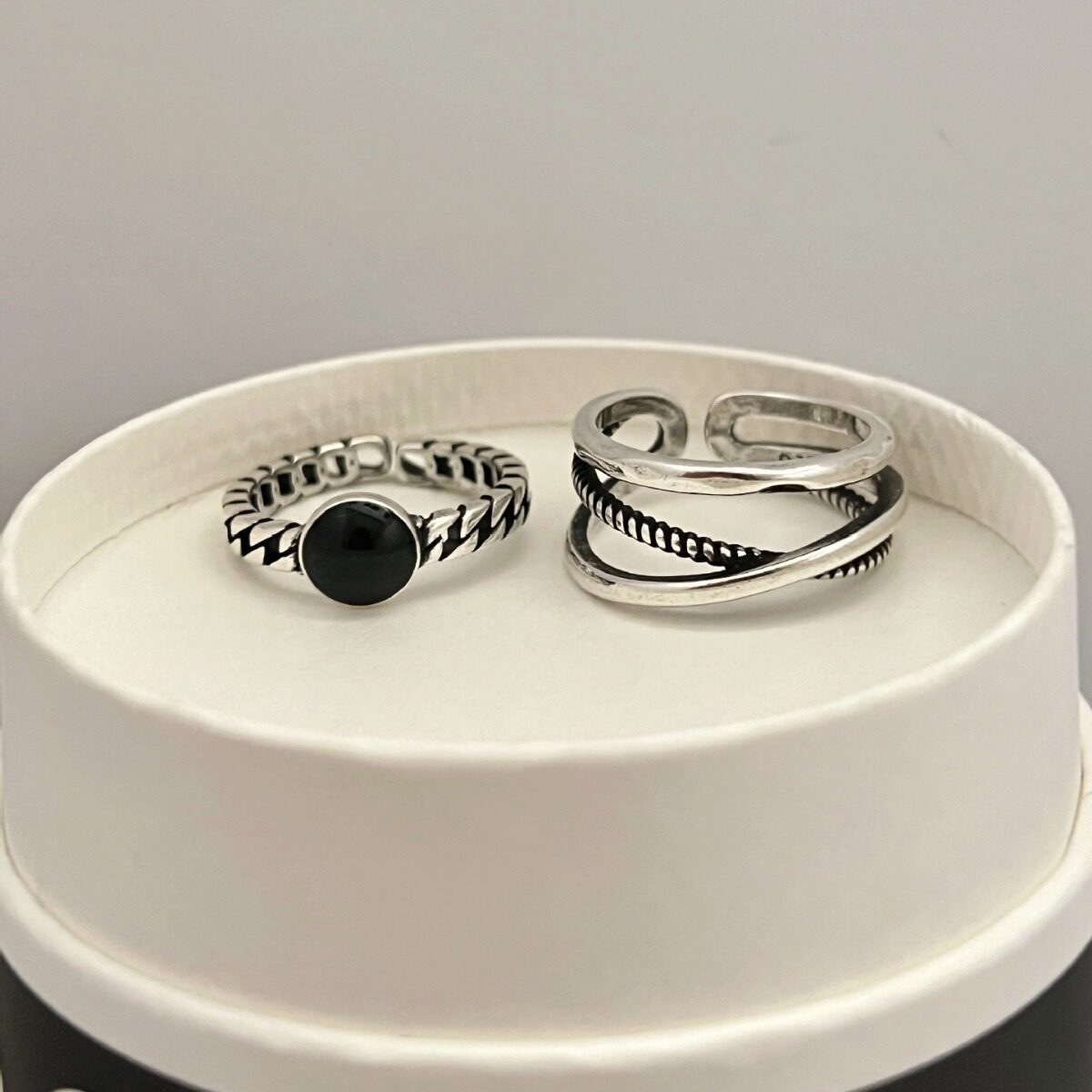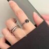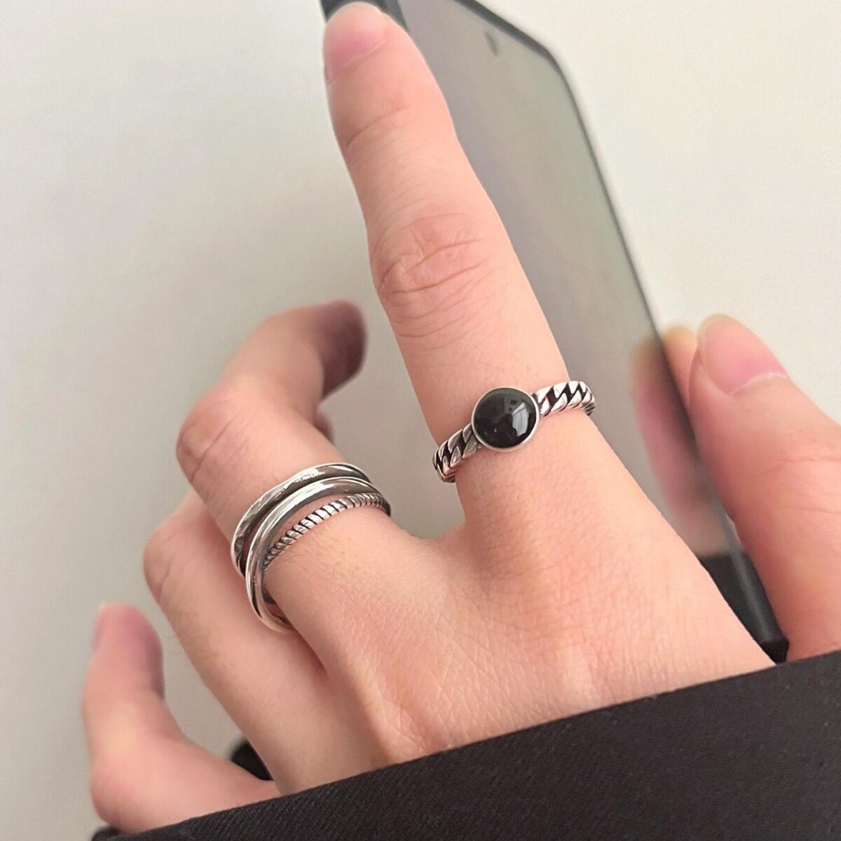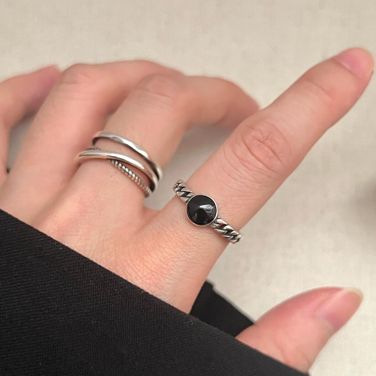 リング|チェーン・クロスライン・ブラック・エナメル・S925シルバー・オープン・インデックス・トレンド
