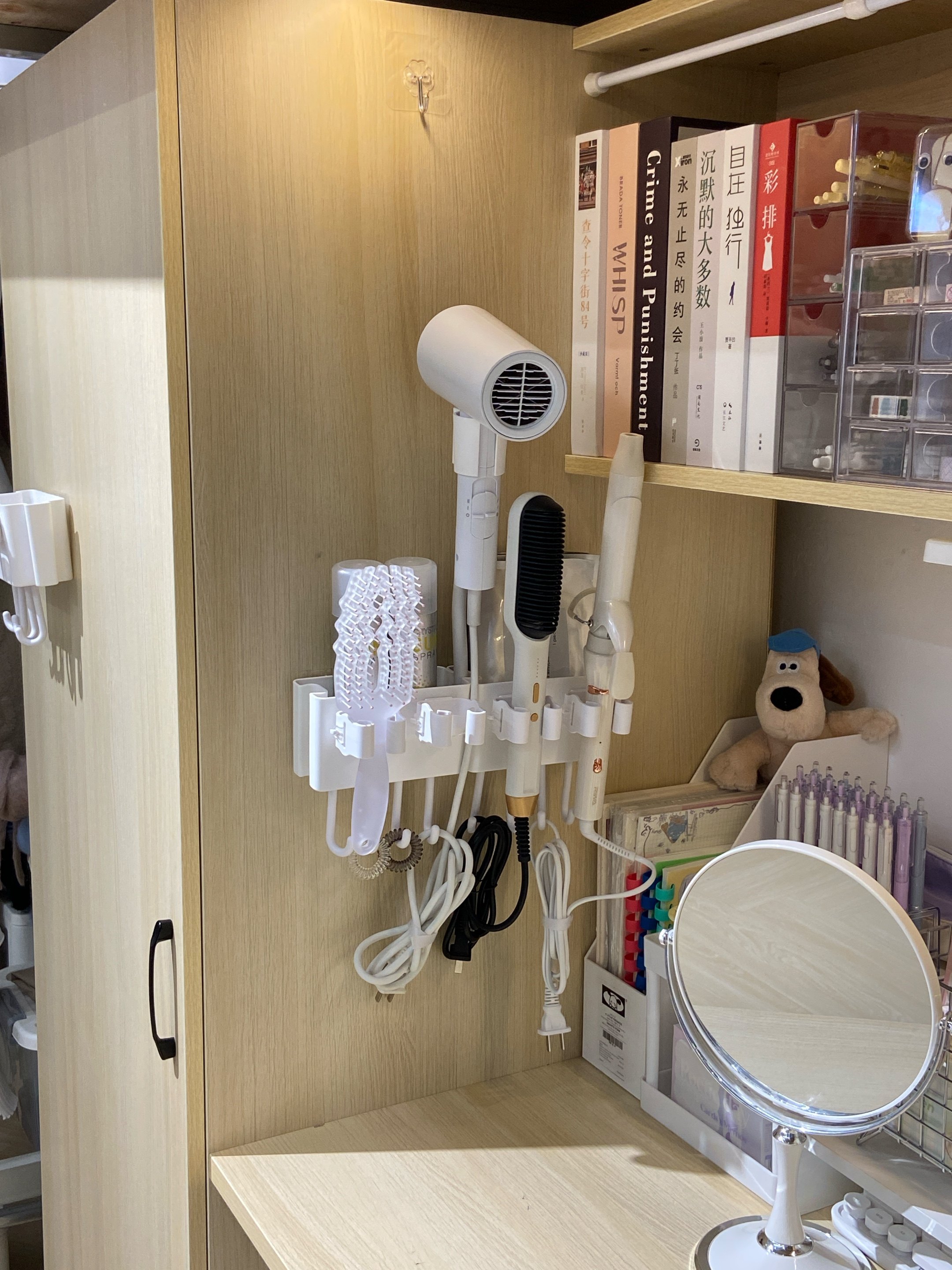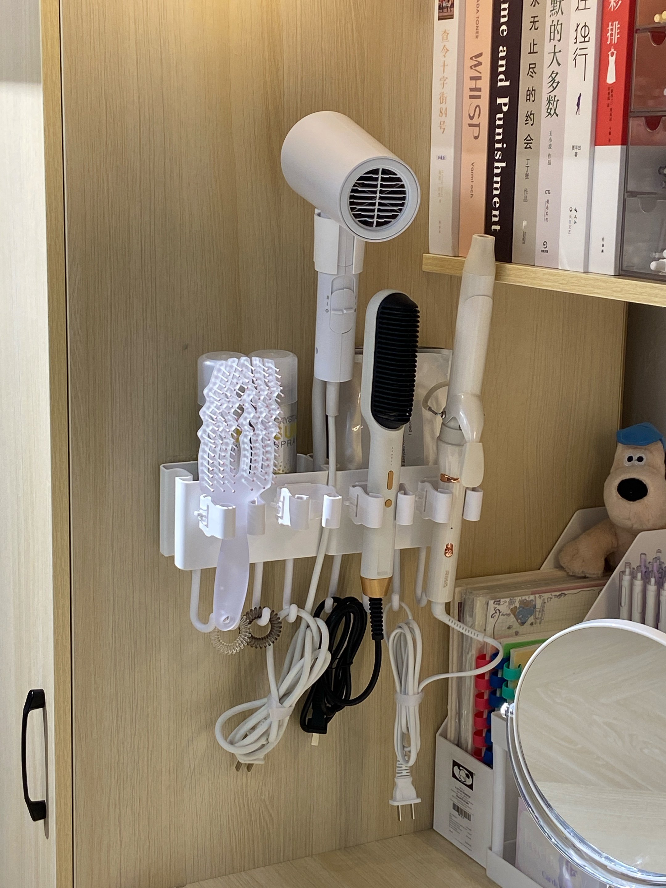受け取ったらすぐに壁に貼り付けました。ヘアアイロンを置くととてもぴったりです。これらの収納器具があれば、家がずっと整頓されました。