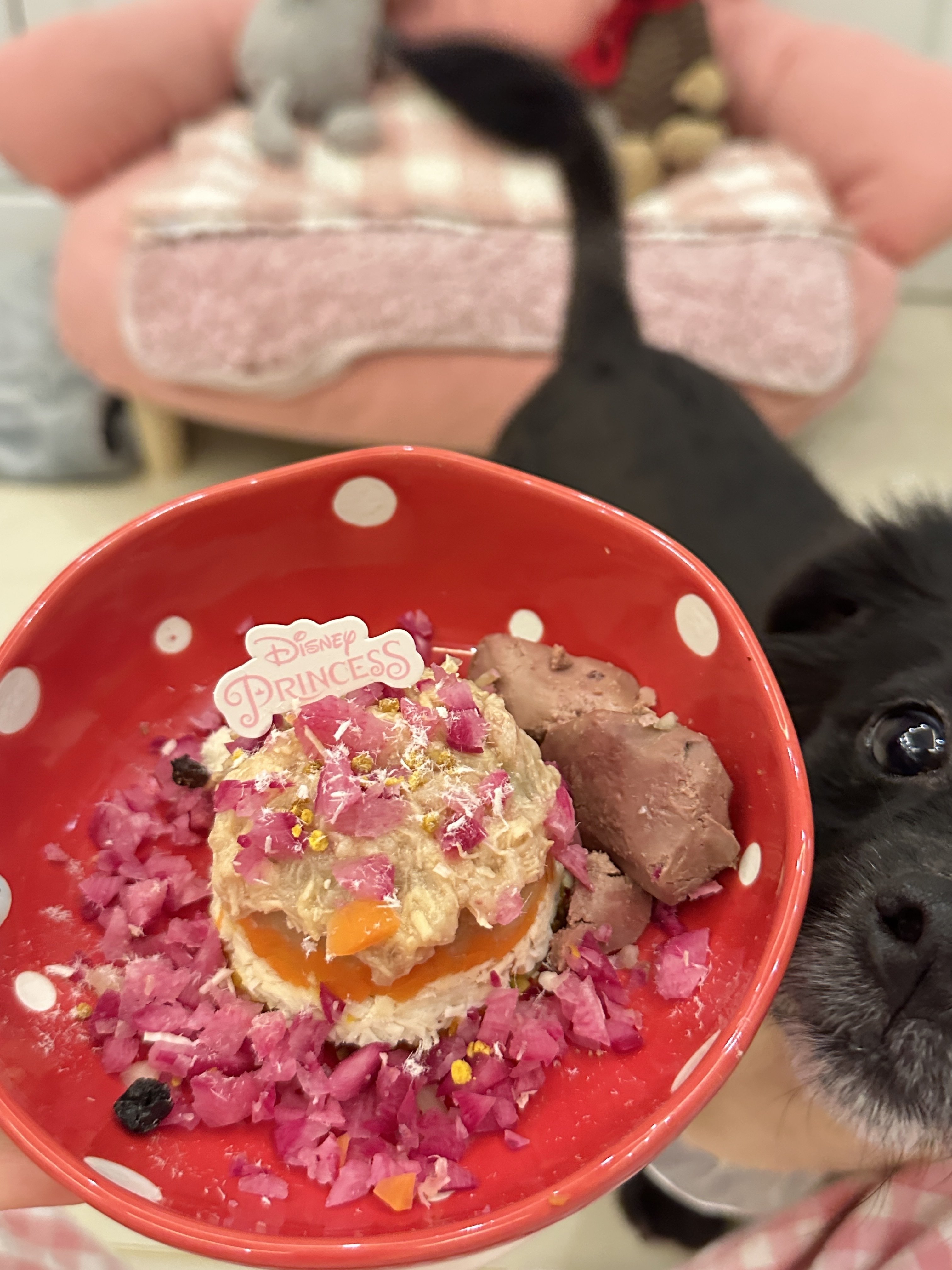 特別に可愛い!!子犬はとても気に入っています。 赤い食べ物、黄色い飲み物がとても可愛いですね。