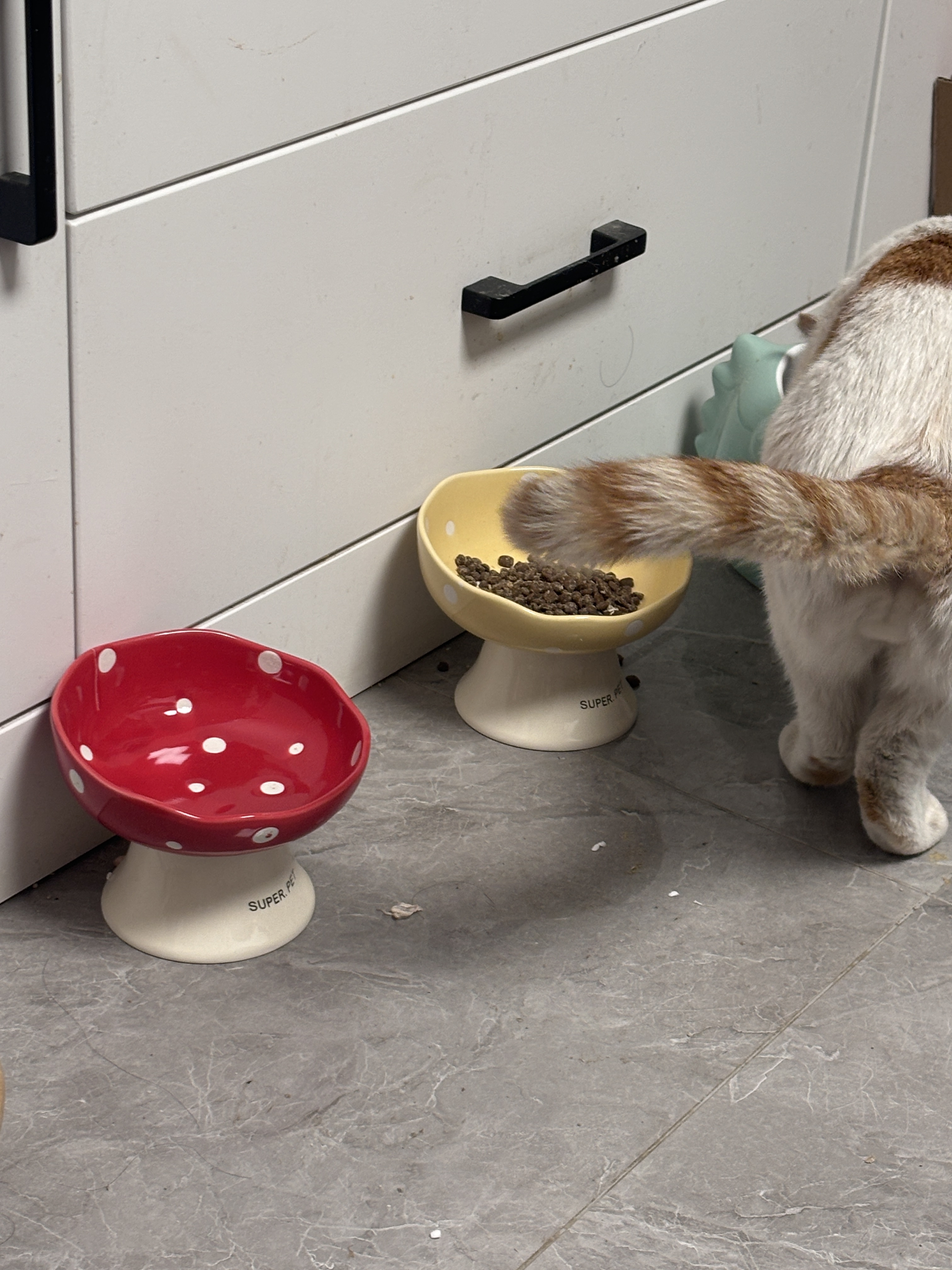 猫用ボウル||陶器製・大口径・斜め口・転倒防止・猫ニキビ防止・きのこ型・高脚デザイン