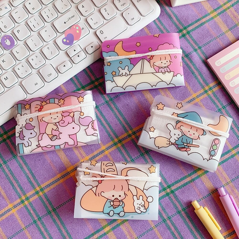 マスク収納クリップ|【5個入り】・カートゥーン・可愛い・持ち運び便利・折りたたみ式・学生・大人用・防塵・新作・お出かけに最適