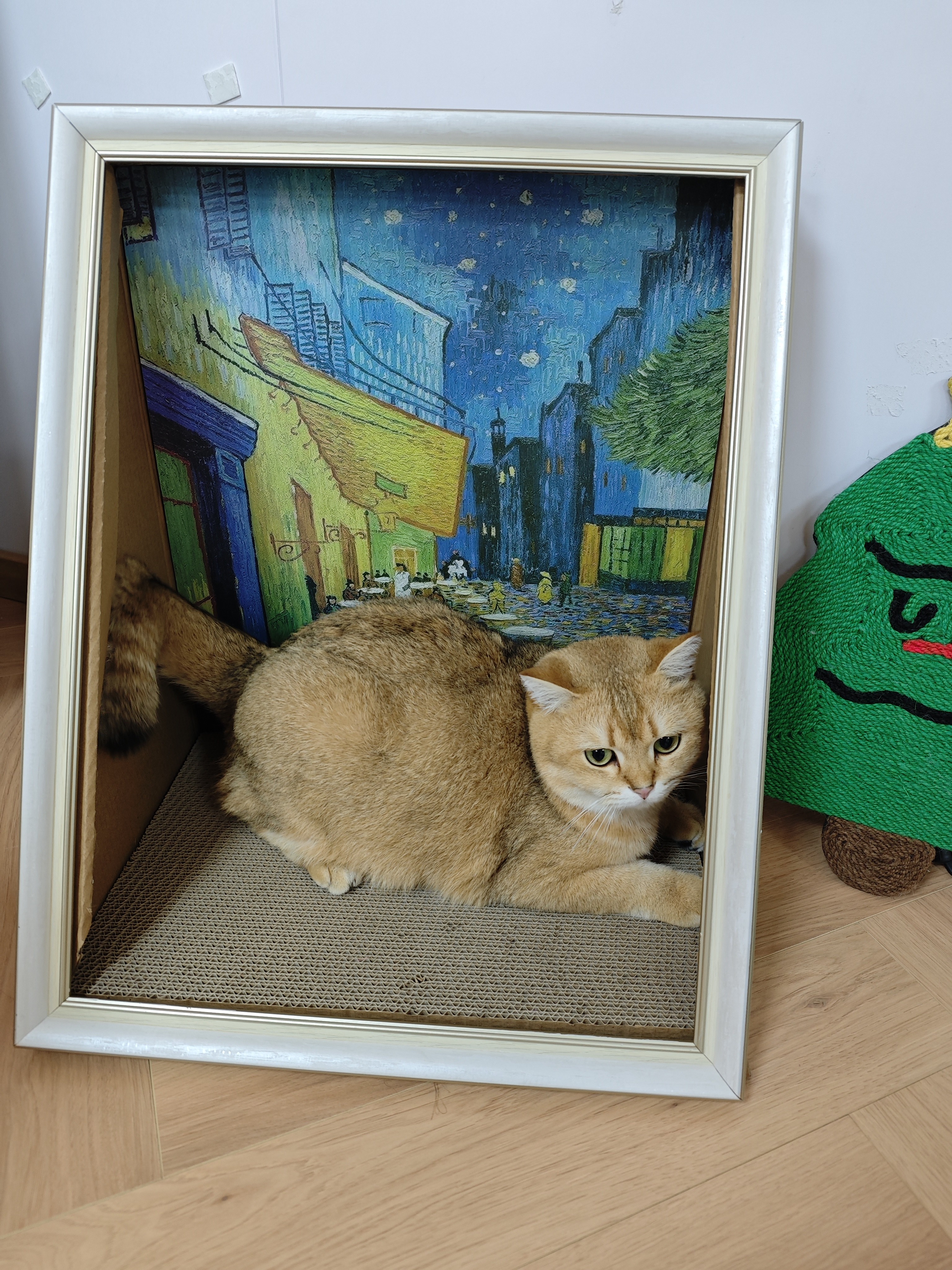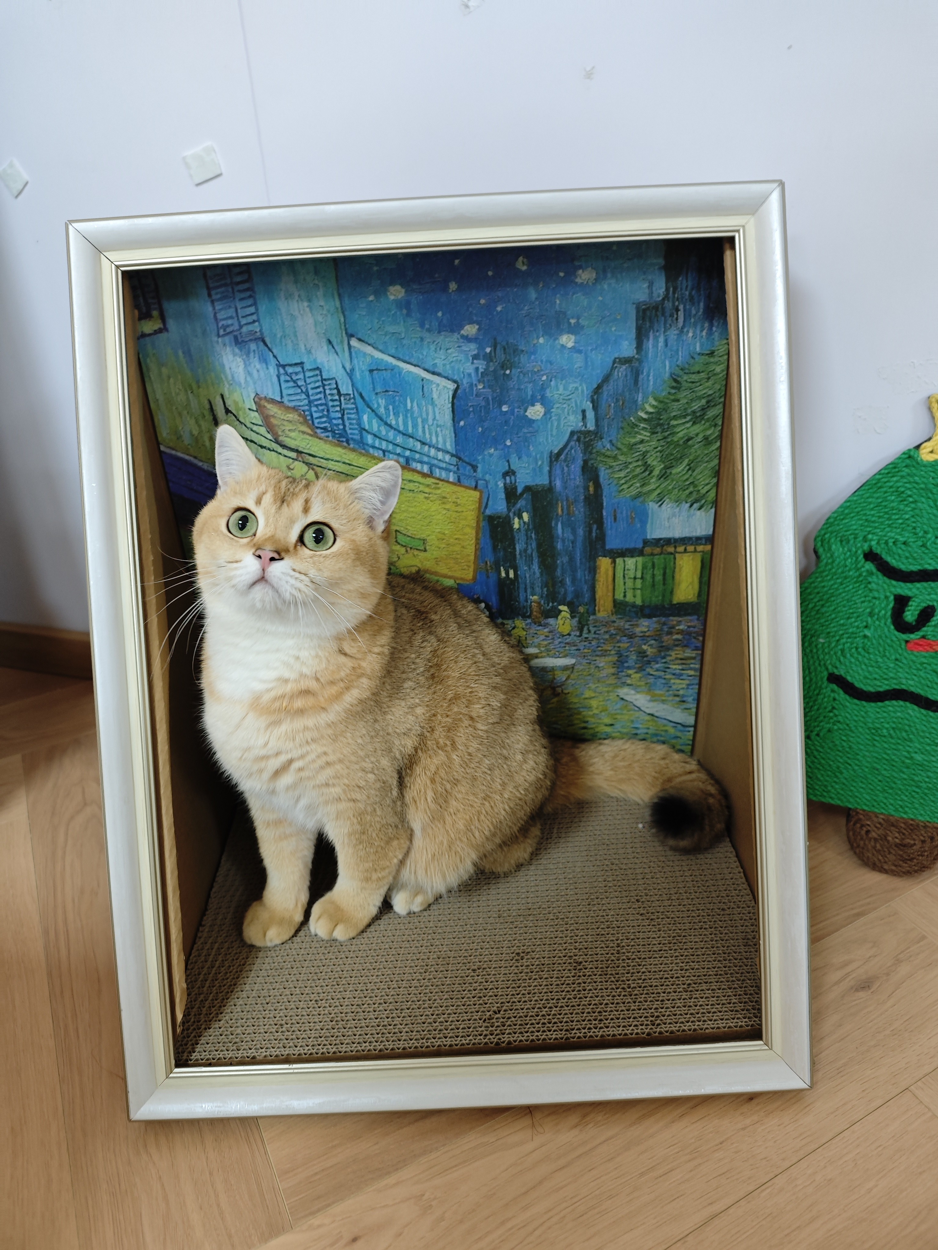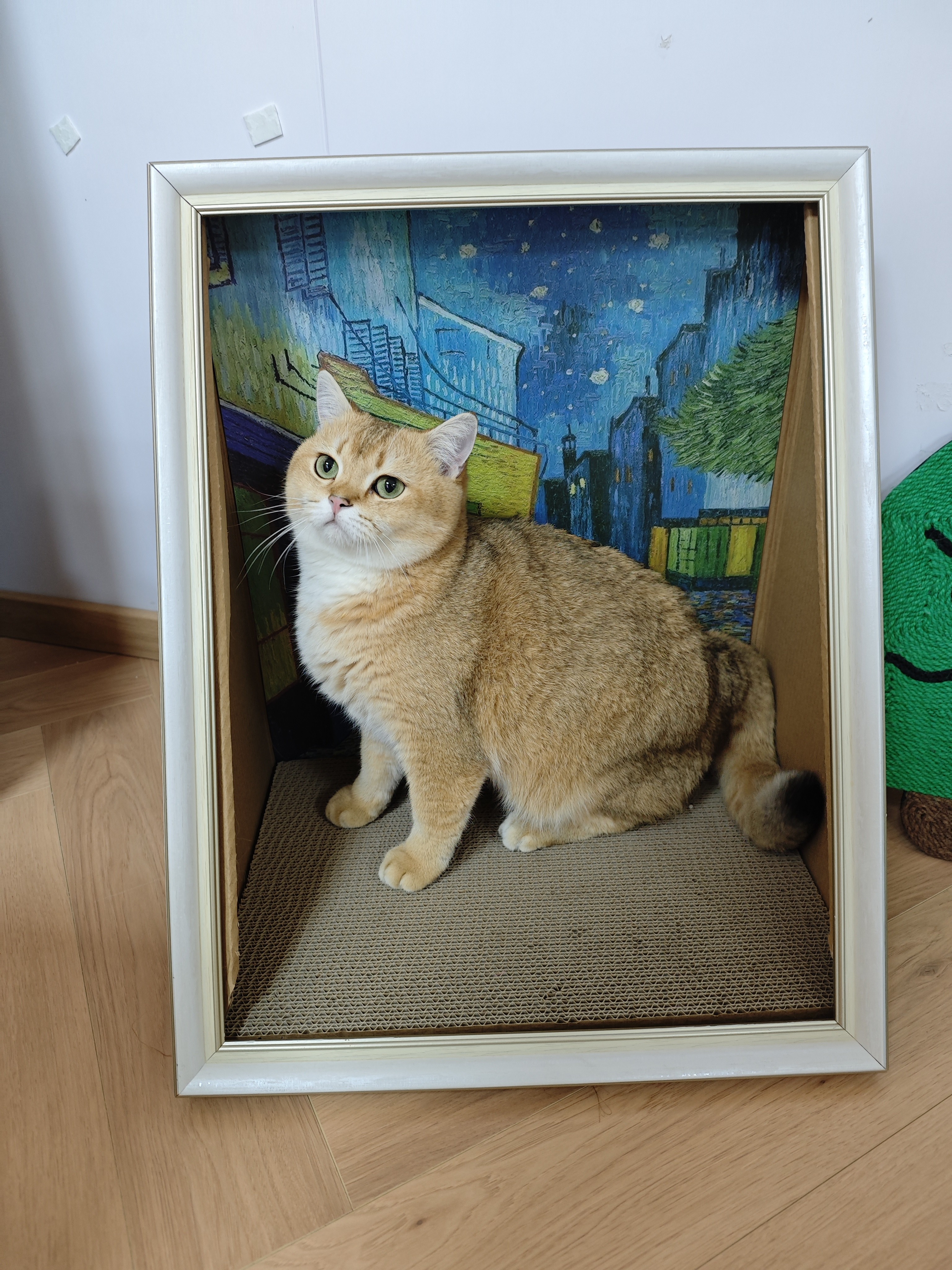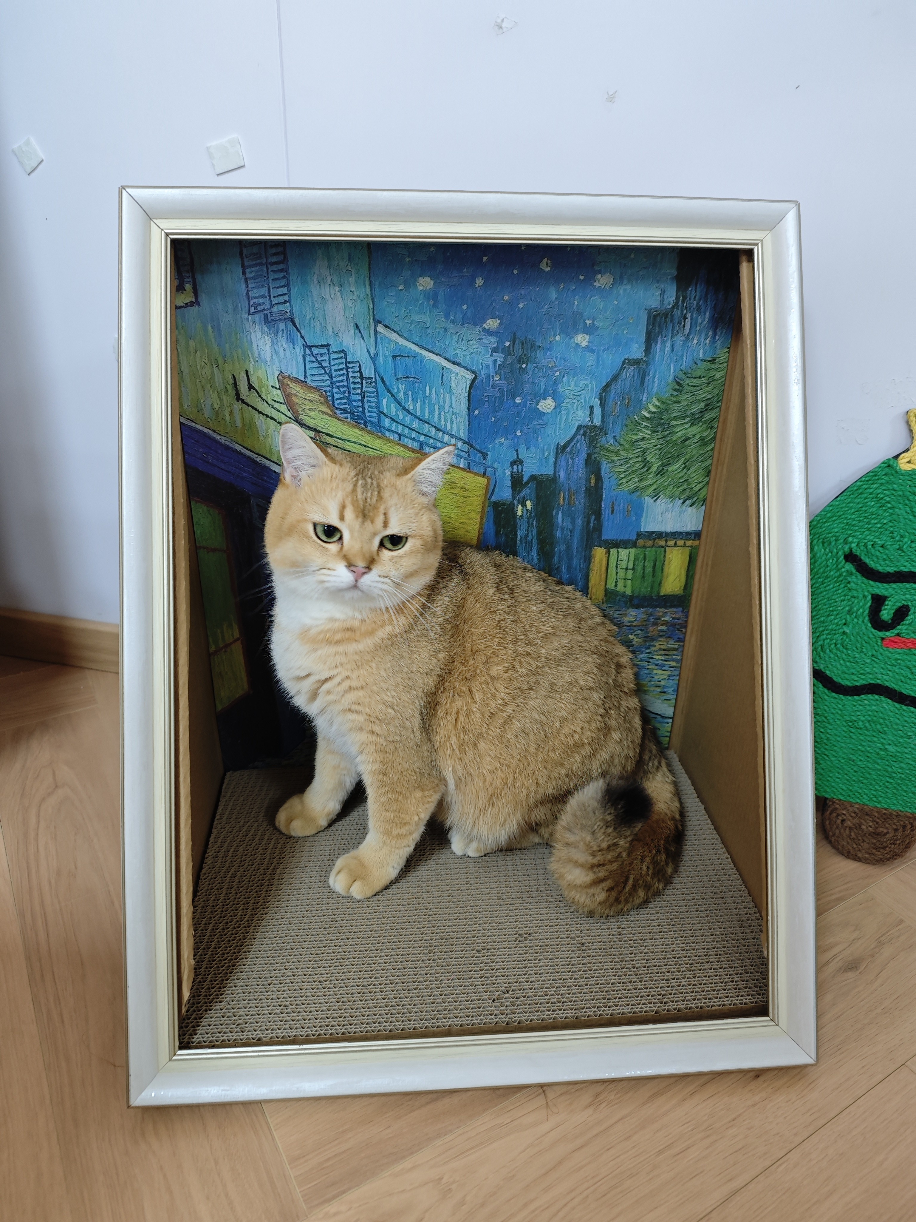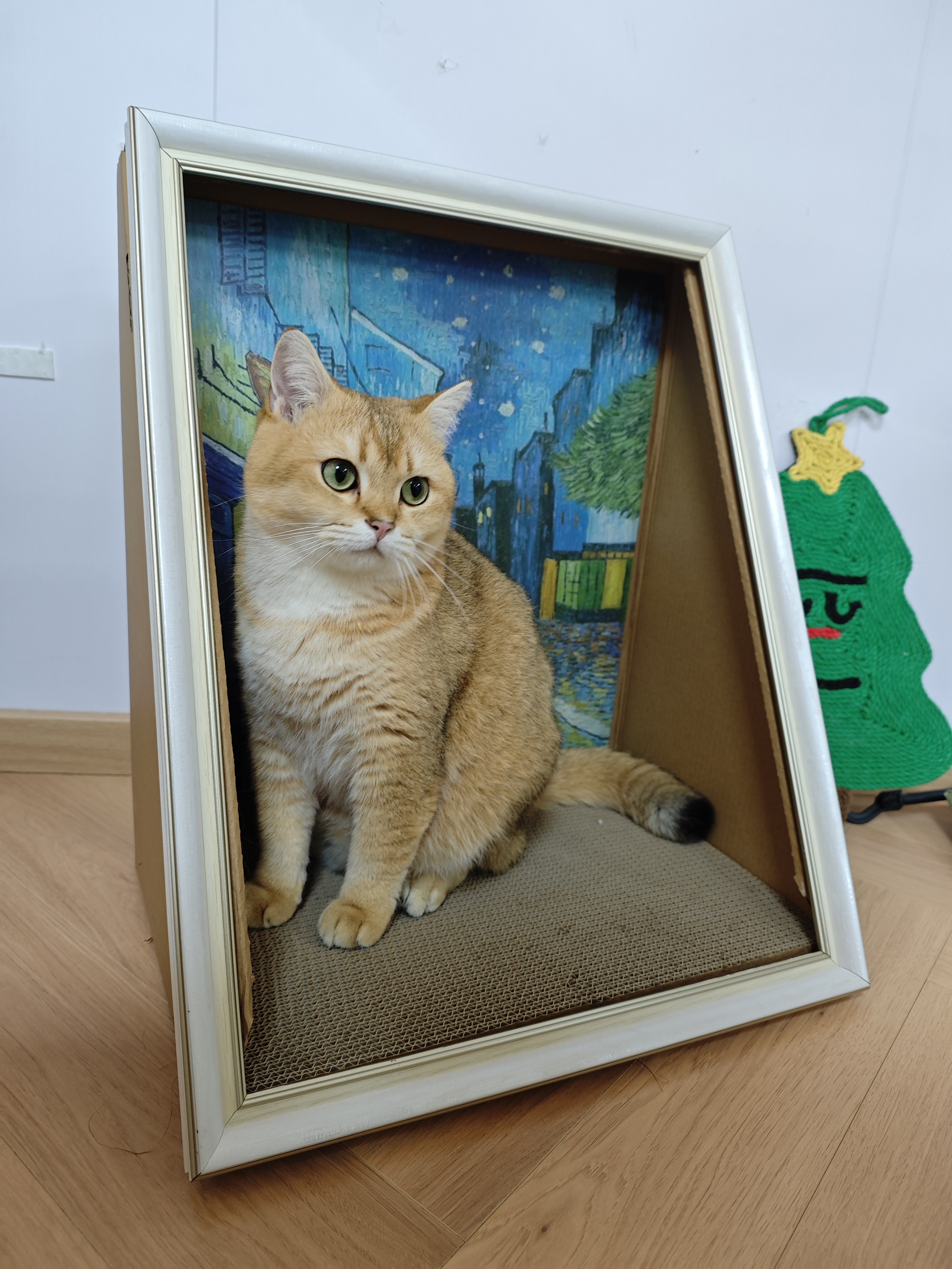 本当に素敵です!!しかも空間が広くて、私の家の大きな太った猫にはまだ大きなスペースがあります。😁全体的な品質はとても良いです!額縁、背景板、猫の爪とぎ板はどちらも高品質で、この価格に値します!猫を飼っている人はぜひ試してみてください。