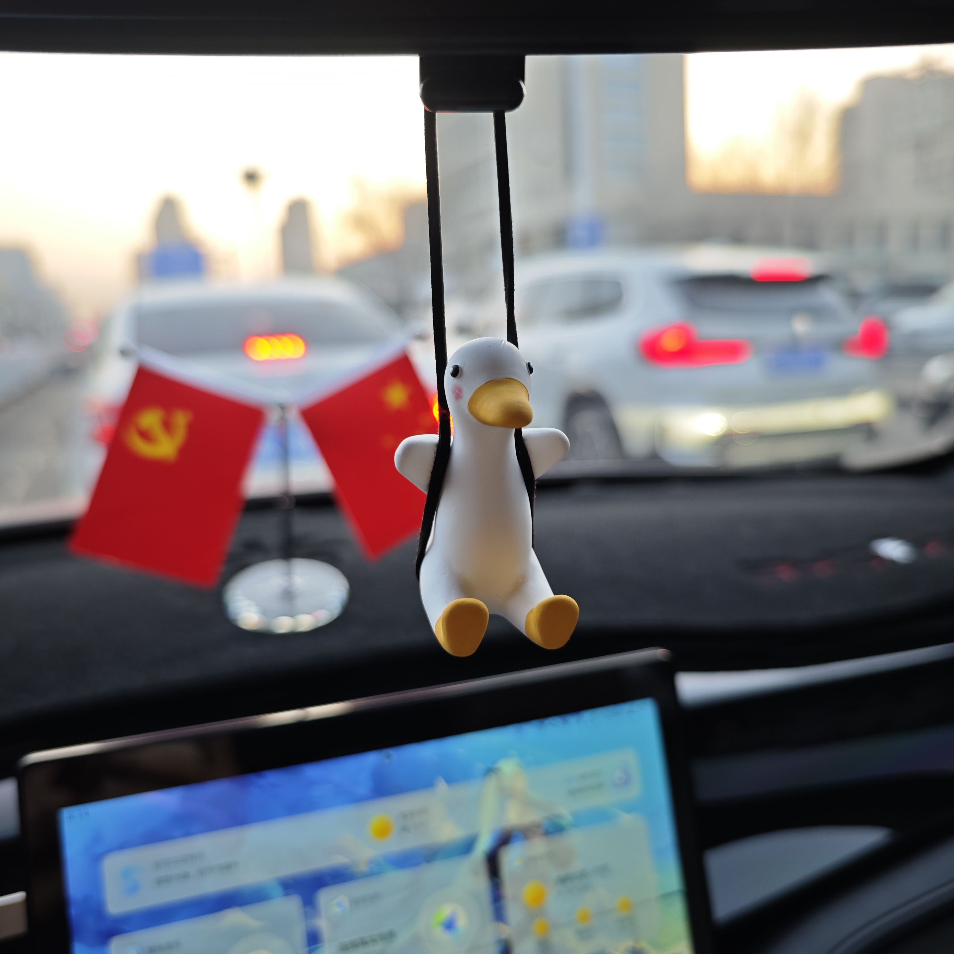 Sparkling車用の吊り下げ飾り|秋千・ダック型・バックミラー・ハンギングデコレーション・車内装飾・かわいい・おしゃれ