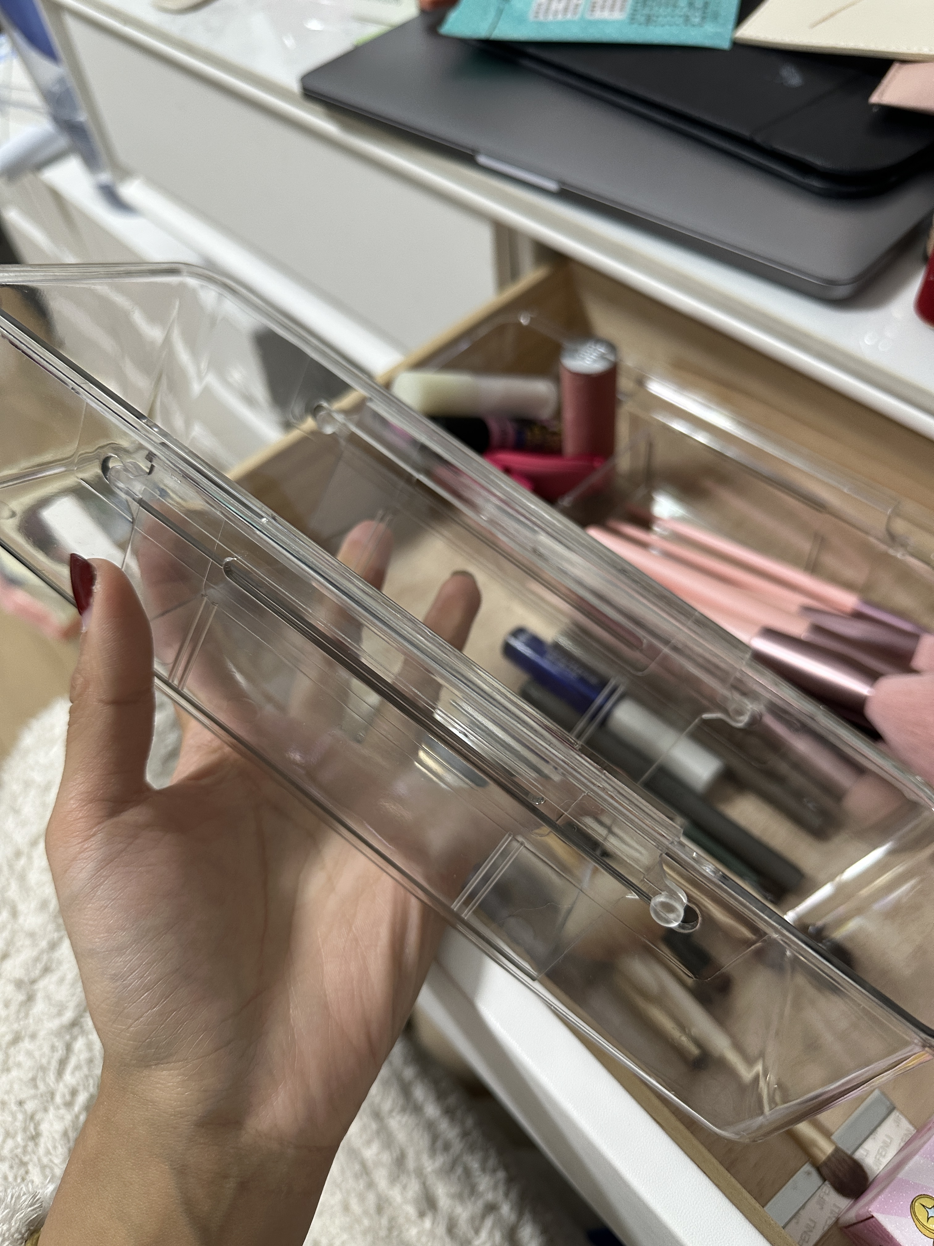 この収納ボックスはとても便利で、化粧ブラシを整理整頓して収納でき、見つけやすく、箱の品質と質感もとても良いです。👍