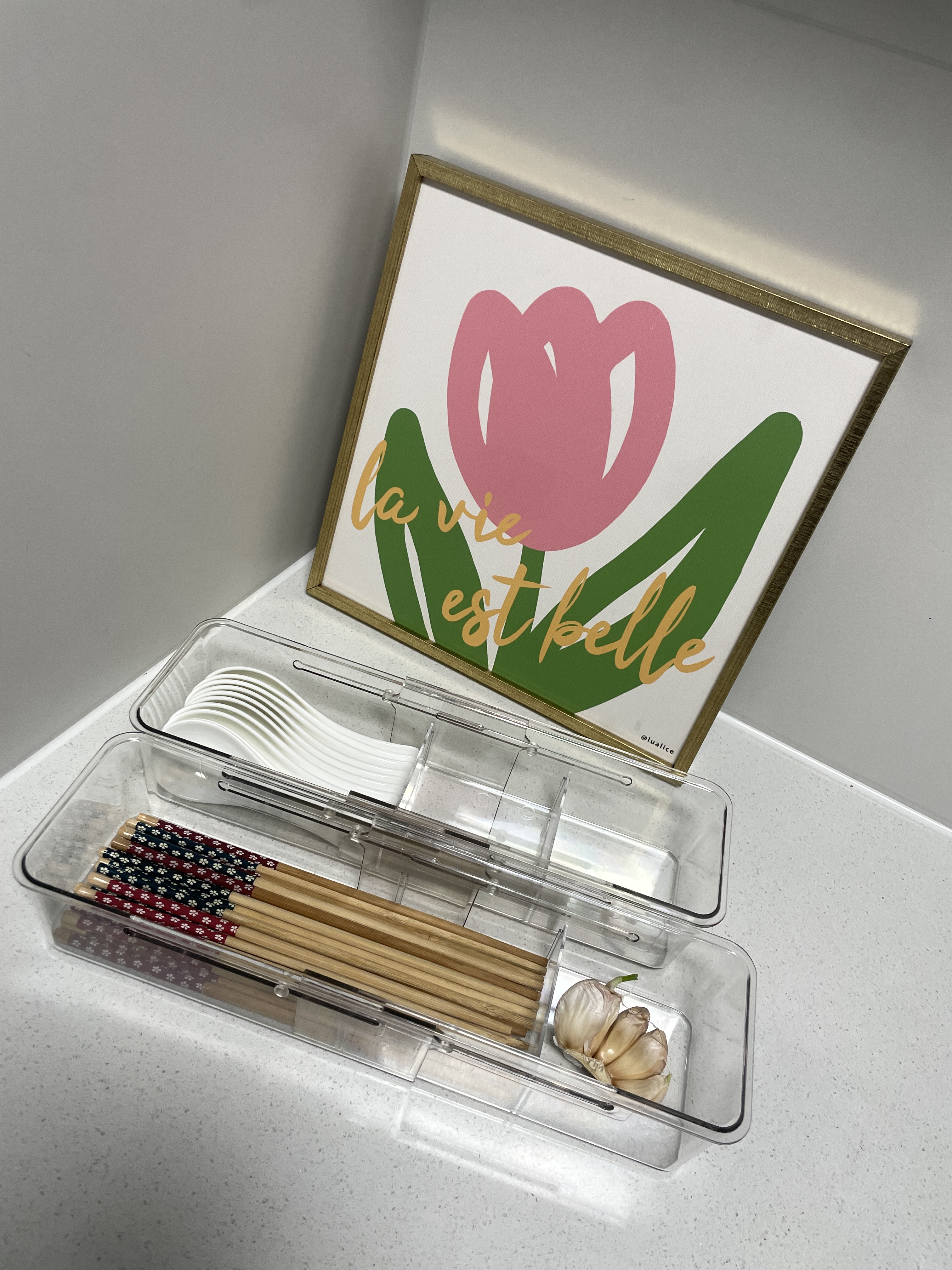 使い勝手が良く、箸、スプーン、その他の道具を置くことができ、引き出しに入れても全く違和感がありません。😁