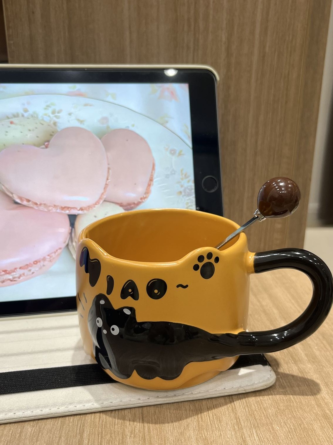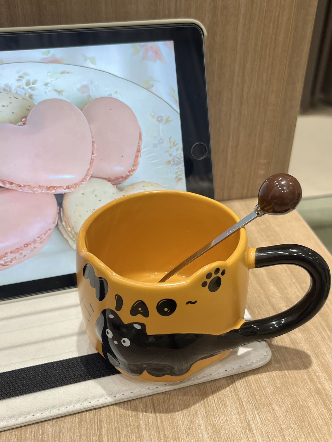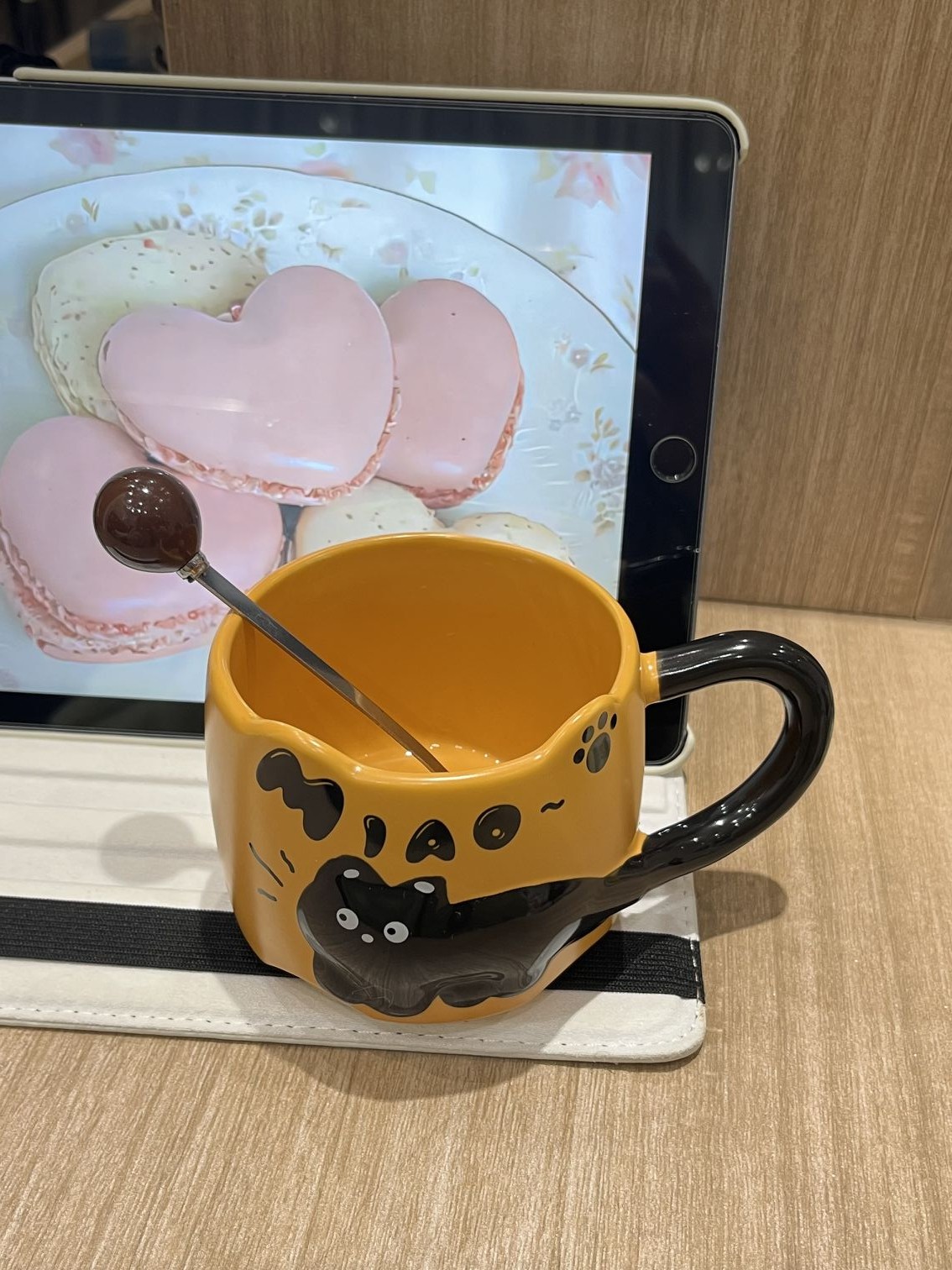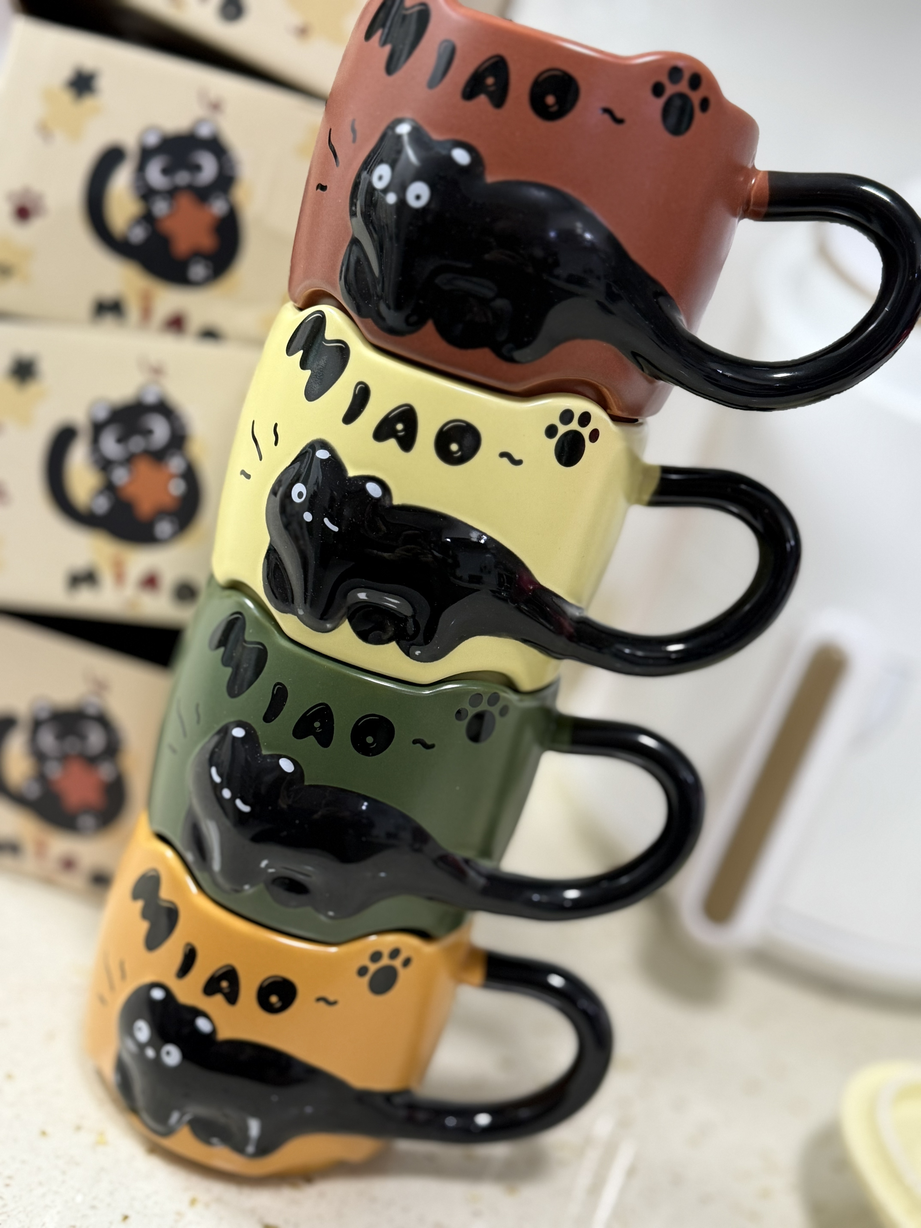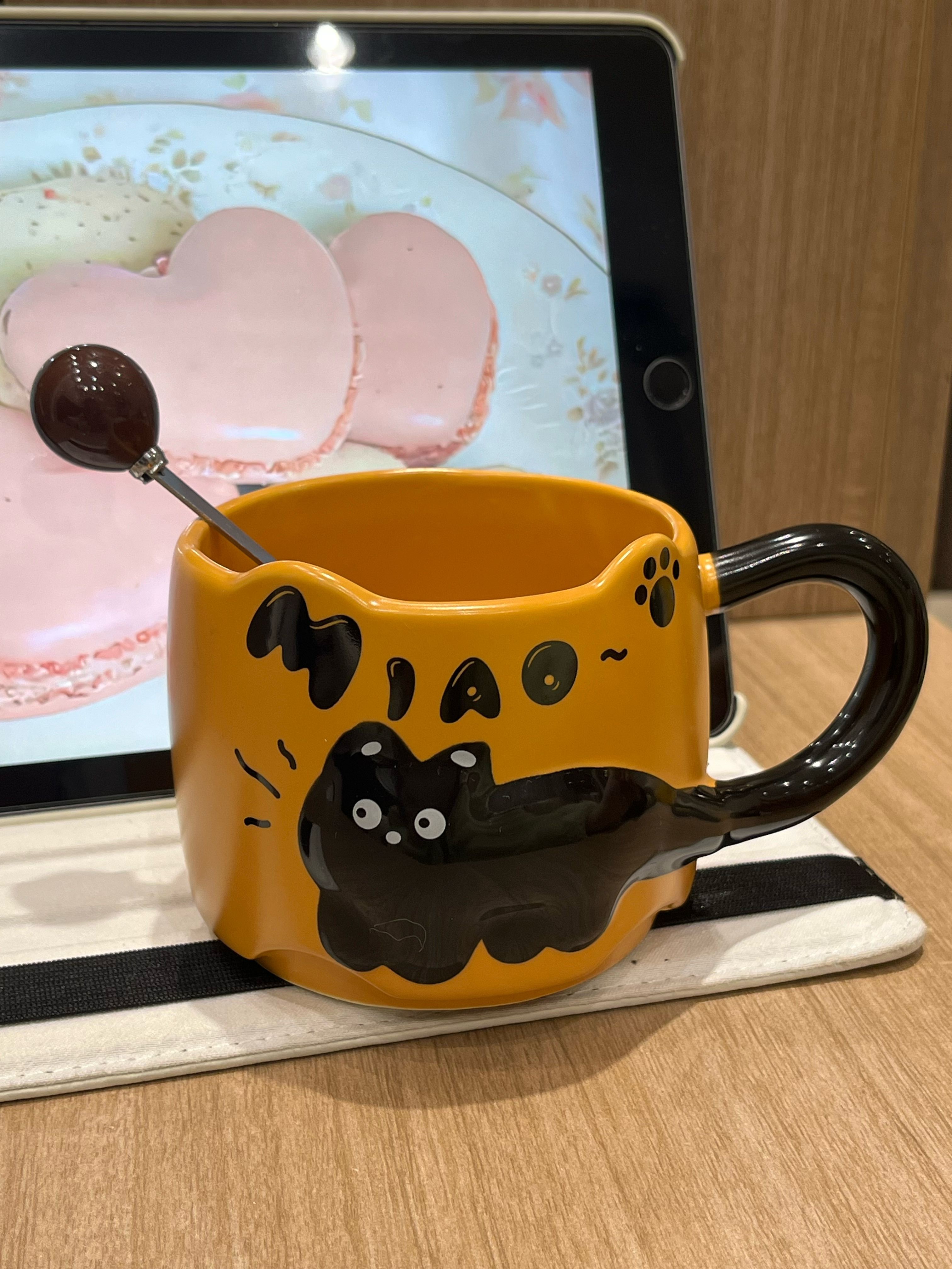 オレンジ色のカップがレトロな雰囲気ですね~柄がとても気に入りました🐱とてもかわいい、スプーンも付いています🥄とても気に入っています。もう少し購入する予定です。積み重ねて保管できます。