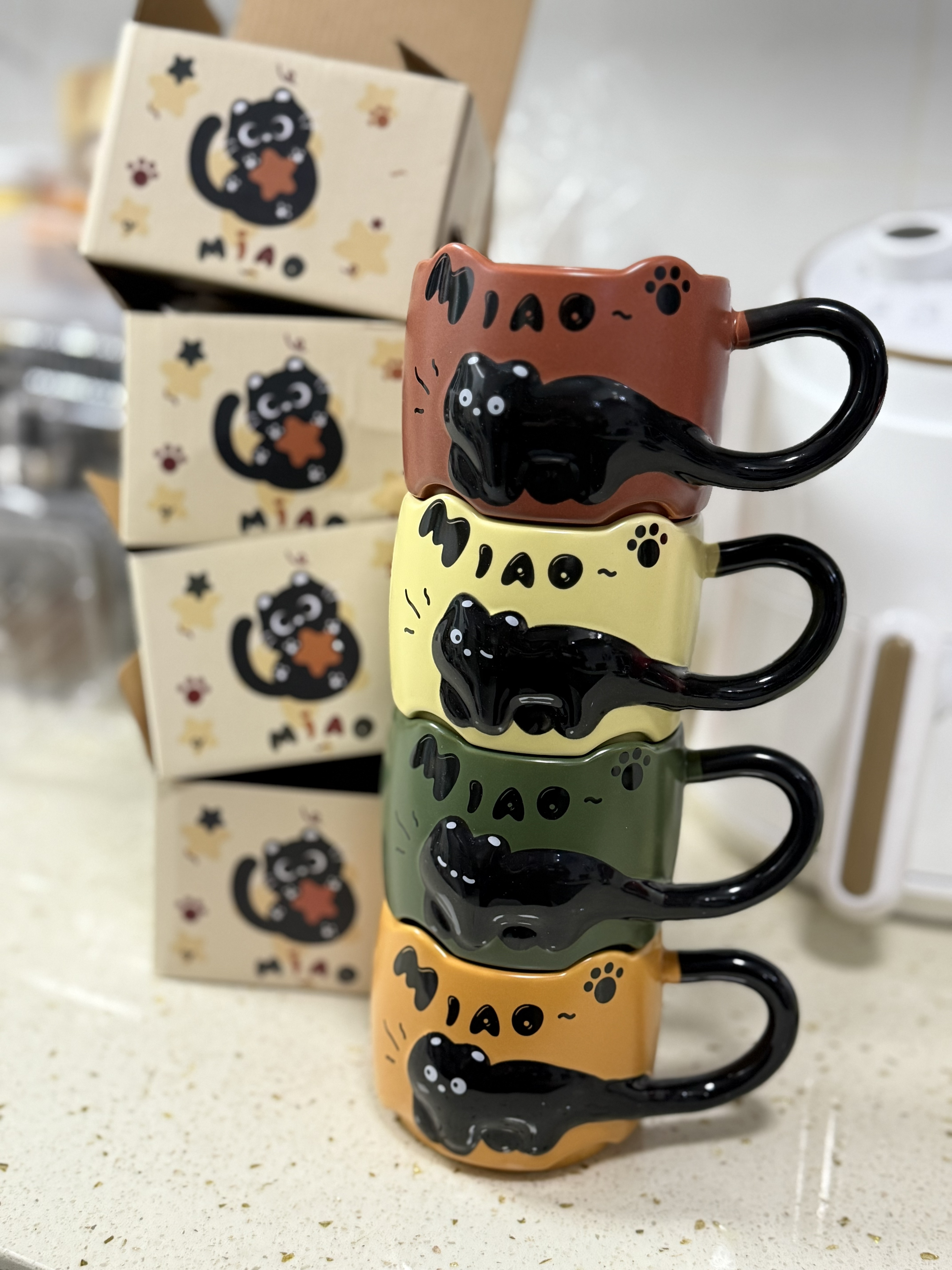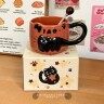 陶器製マグカップ|オフィス用・重ね置き可能・家庭用・コーヒーカップ・猫・ペア・ギフト・かわいい