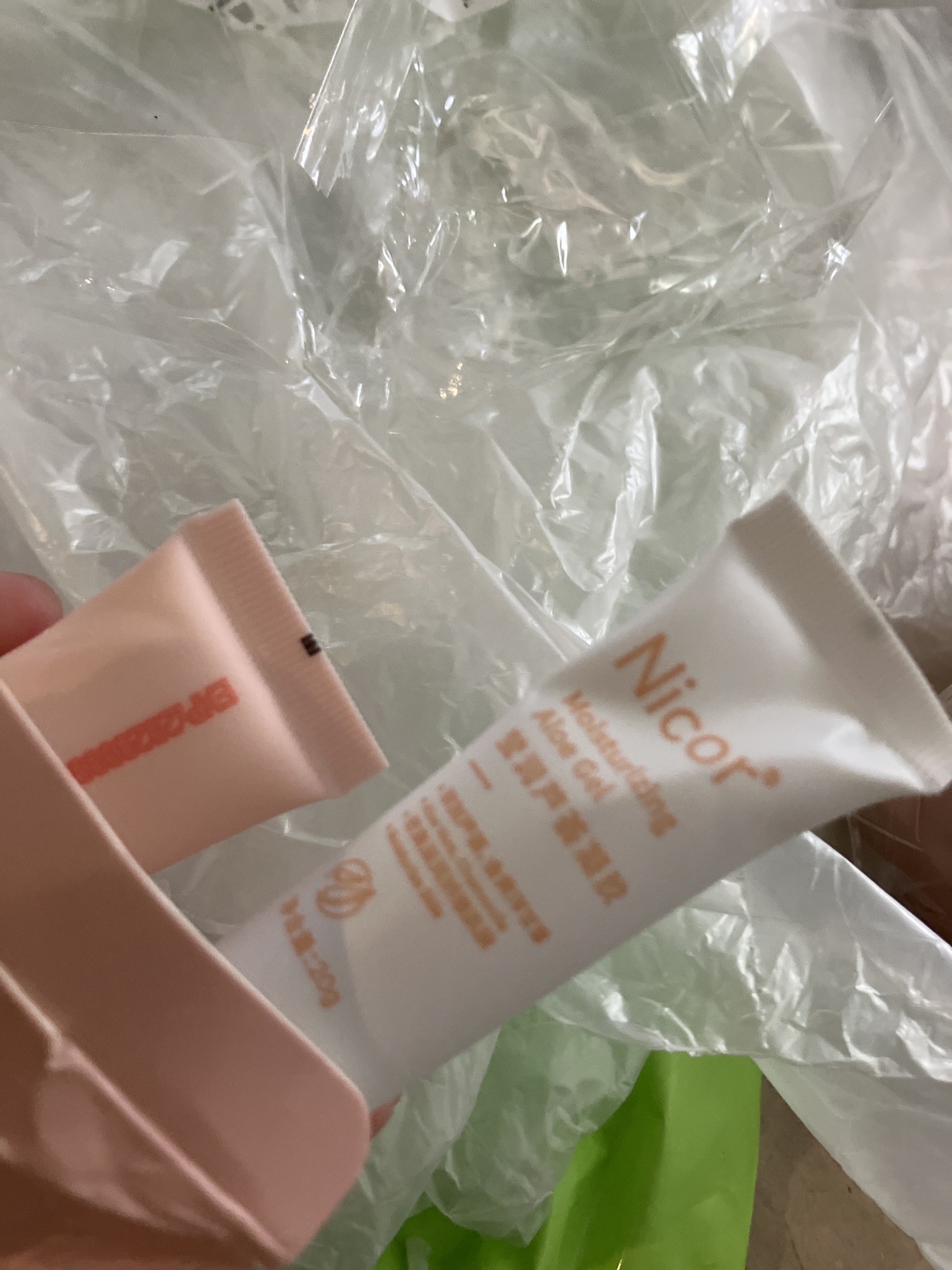 箱がボロクソになってたwなんかクリームを広げるスプーンみたいなの入ってたよ!!中身のやつ少し変形w除毛?のクリームと保湿なのかなみたいなの入ってたよー