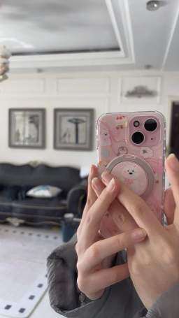 iPhoneケース|スマホケース・iPhone16/15 Pro Max/14/13・磁気吸着・スタンド付き・少女風・ピンク・パステルカラー・アニマル