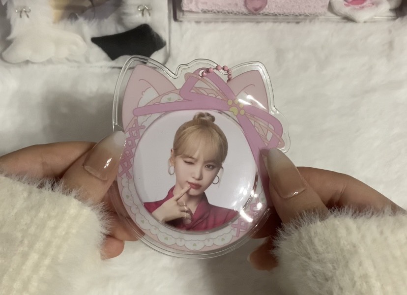 Sparkling猫耳・レースバッジカバー・58-65mm・ブローチ・収納バッグ|推し活・痛バッグ・アニメ風・オリジナル