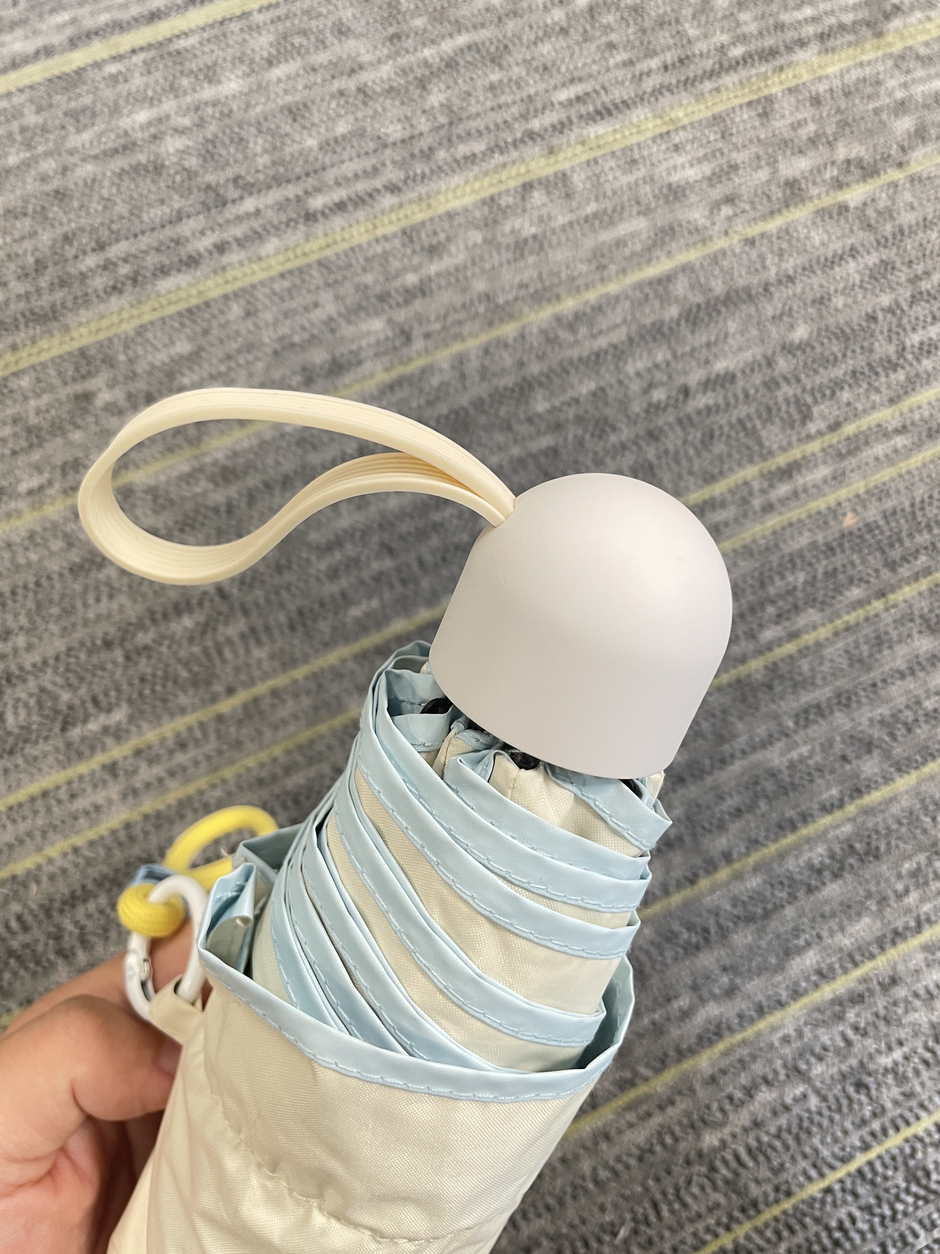 特に美しい傘で、小さくてかわいらしく、手のひらと同じくらいの大きさですが、開くと広いスペースがあり、一人で持つのに十分で、バッグに収まります。