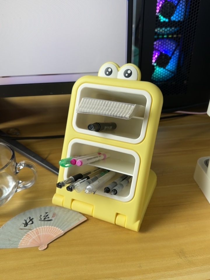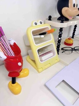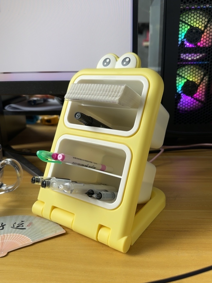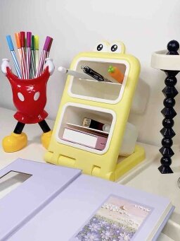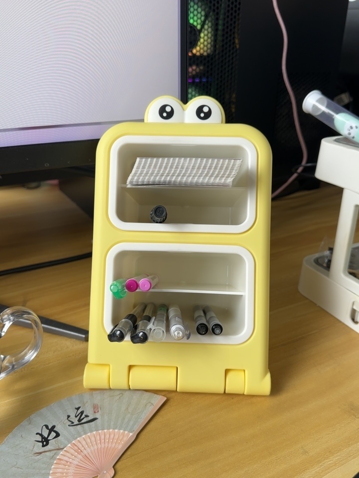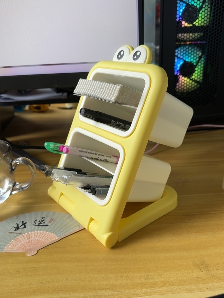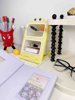 小さくてかわいくて場所を取らず、大容量です。机の上に置いても机に活力を与えます。見ているだけで幸せな気分になります。4つのコンパートメントがあり、各層に異なるペンが入っています。すぐに見つけました。とても気に入っています。