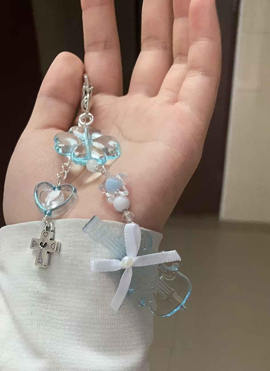 Sparklingキーホルダー・ビーズチェーン・ストラップ・手作り・水色|パステルカラー・可愛い・おしゃれ・ガーリー