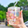 ガラスコップ・ストロー付き・竹模様・コーヒーカップ・おしゃれ・カラフル