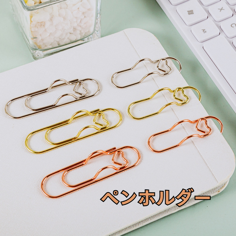 ペンホルダー|「10枚」多機能・金属製・ハート型・クリップ・ノート固定・文房具・便利・おしゃれ