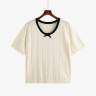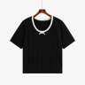 PLUSSELFトップス|大きいサイズ・レディース・ラウンドネック・デザインニット・配色・半袖Tシャツ・ゆったり・体型カバー・2025夏・おしゃれ