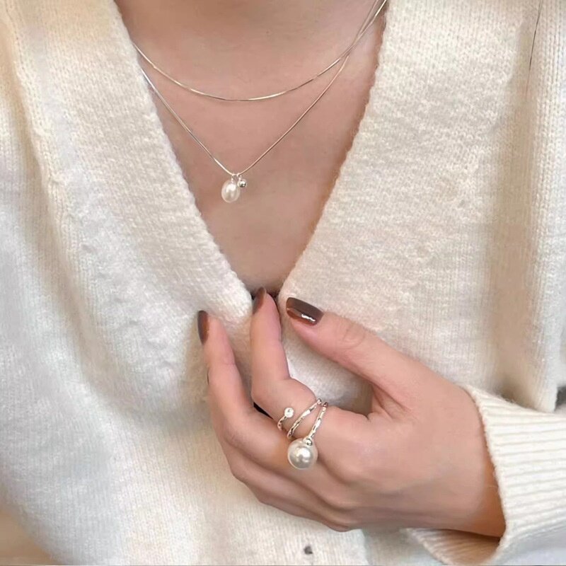 2連パールネックレス|ペンダント・レディース・重ね付け・鎖骨ネックレス・高見え・おしゃれ・シンプル