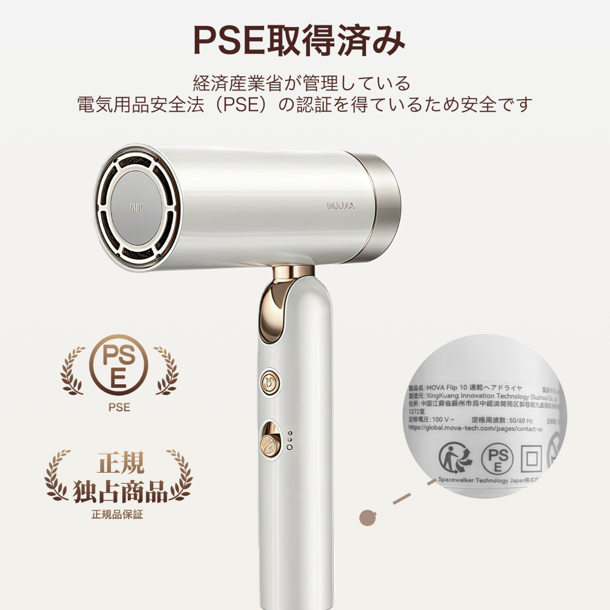 Mova Flip10 折りたたみ式ドライヤー|300g超軽量・スマホサイズ・速乾&恒温ケア・直毛&巻き髪対応・旅行携帯に最適・マイナスイオン