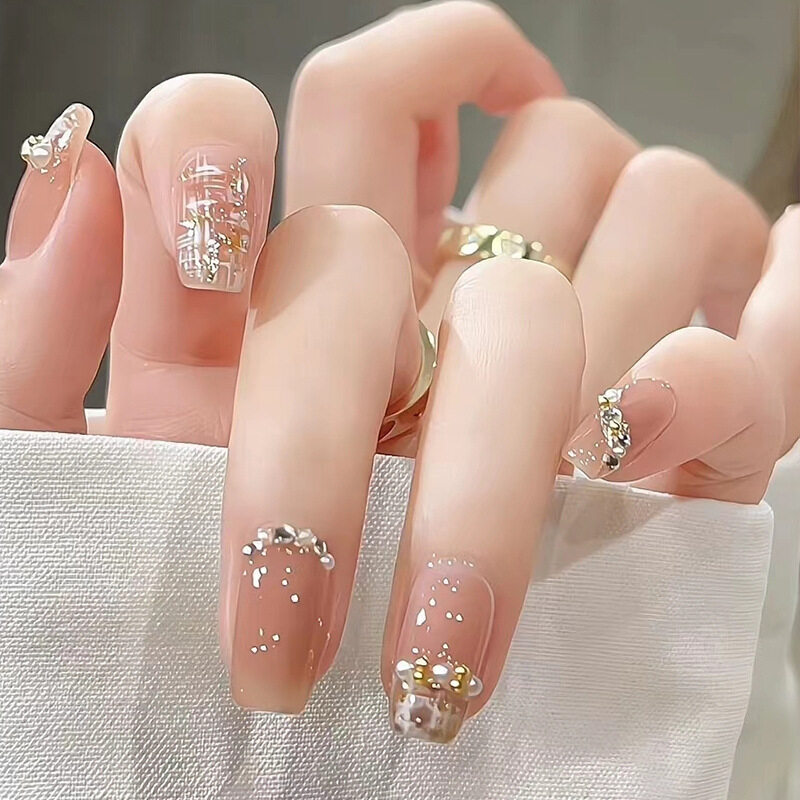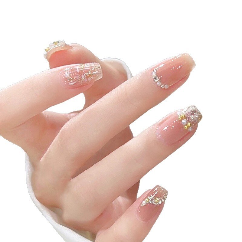 ネイルチップ|人気・高級・ピンク系・パール・ラインストーン付き・優しい雰囲気