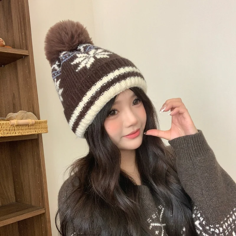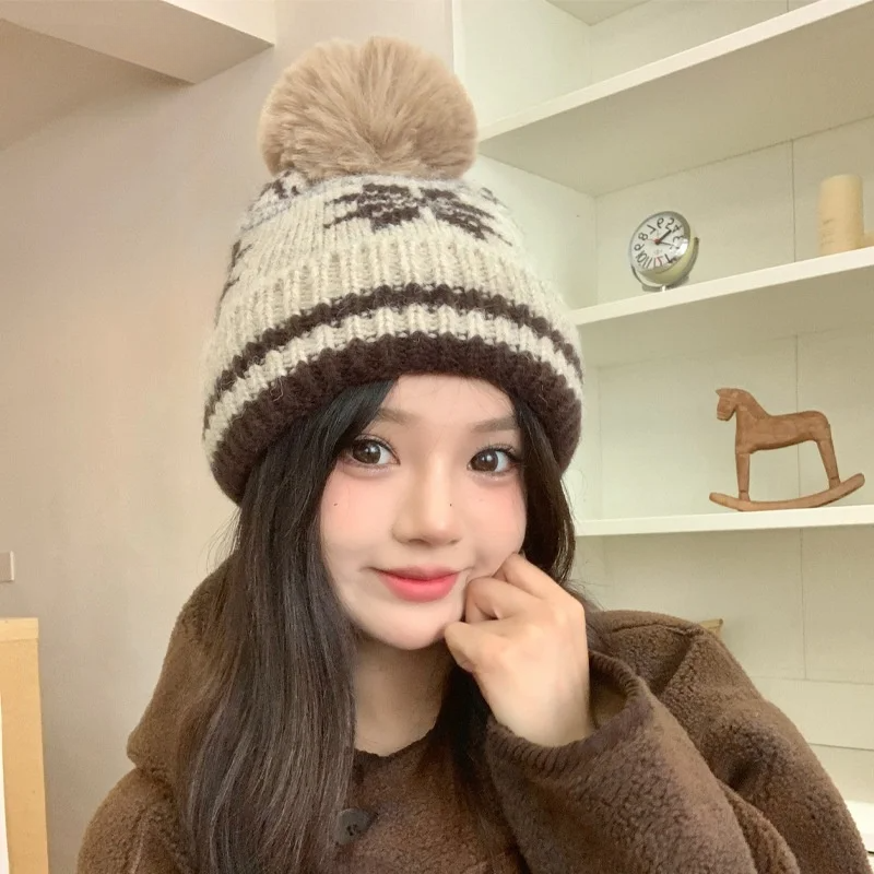 帽子|冬用・屋外用・暖かいウール・韓国風・おしゃれなニット・レディース・裏起毛・耳当て付き帽子