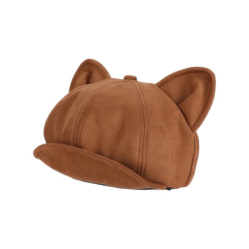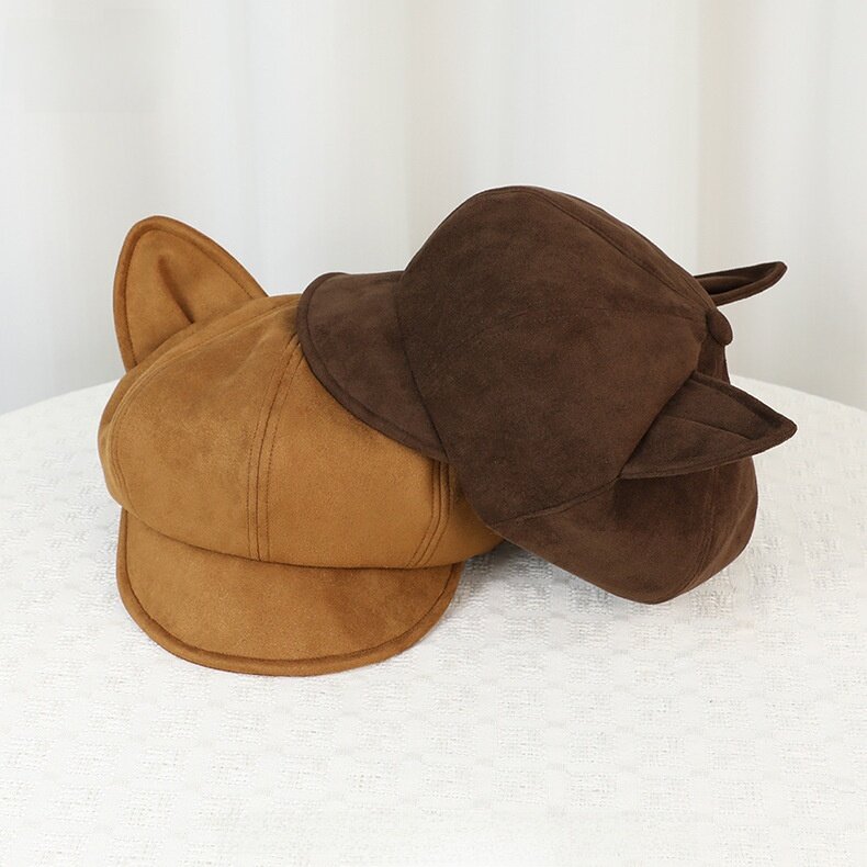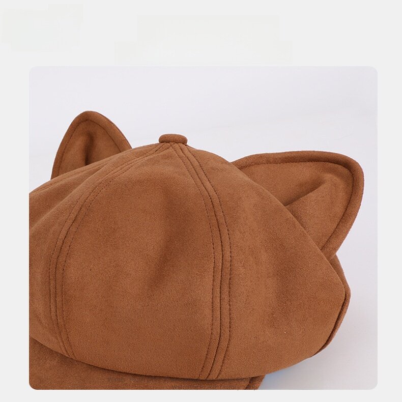 猫耳八角帽子|欧米風スエード・レディース・秋冬・おしゃれ・雰囲気・ベレー帽・多彩なスタイル・小顔効果