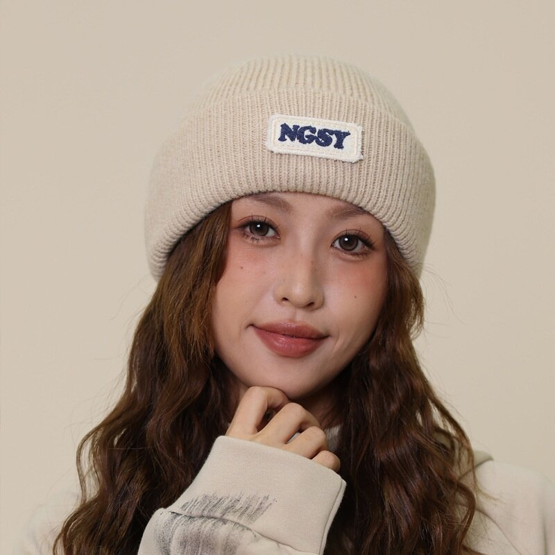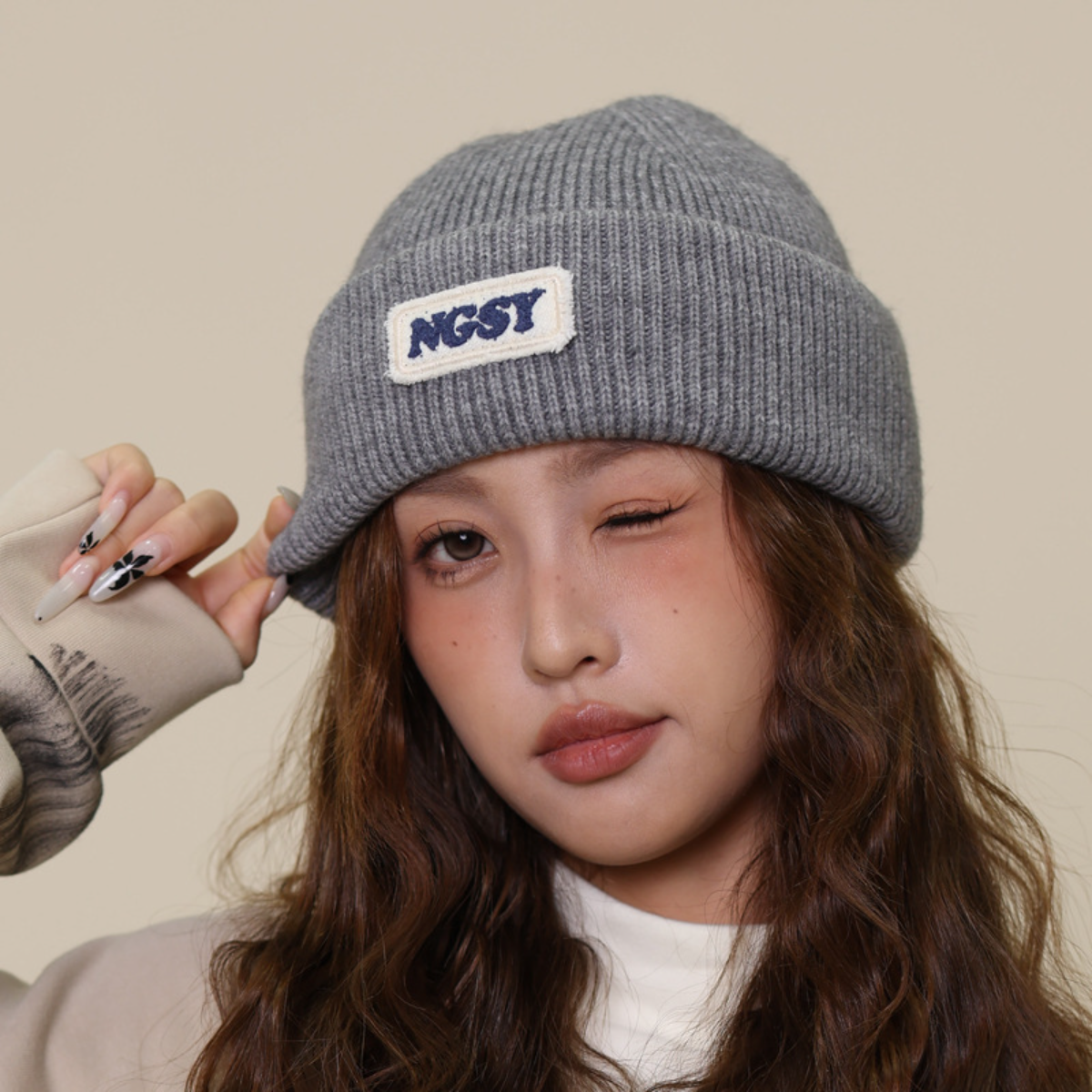 ニット帽|シンプルな文字刺繍入り・無地・秋冬用ウール帽子・フード付き帽子・小顔効果・高級感