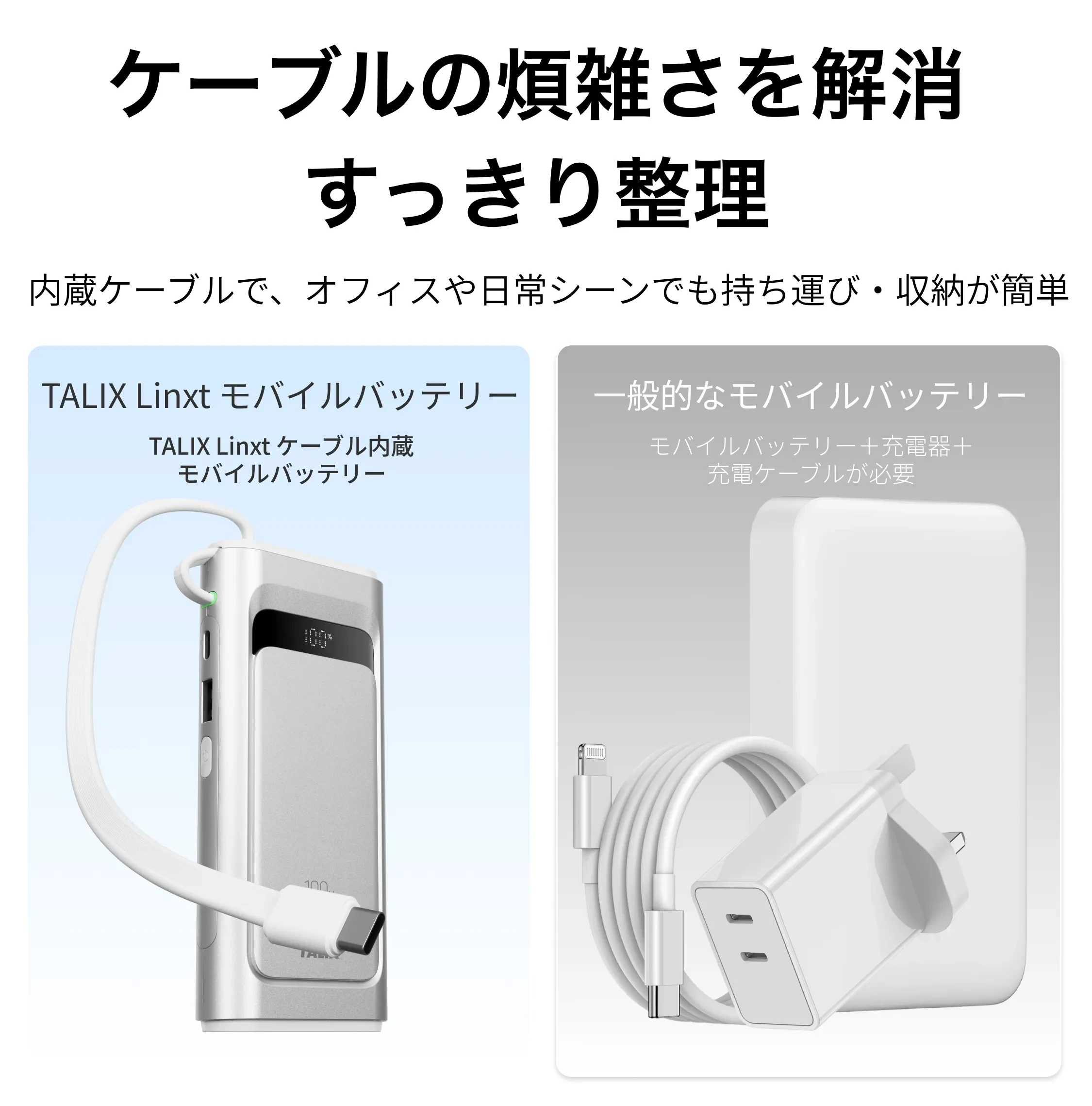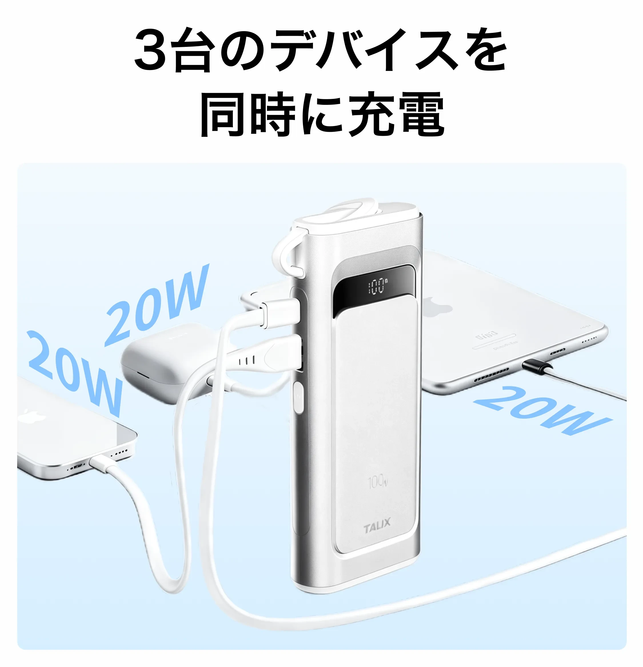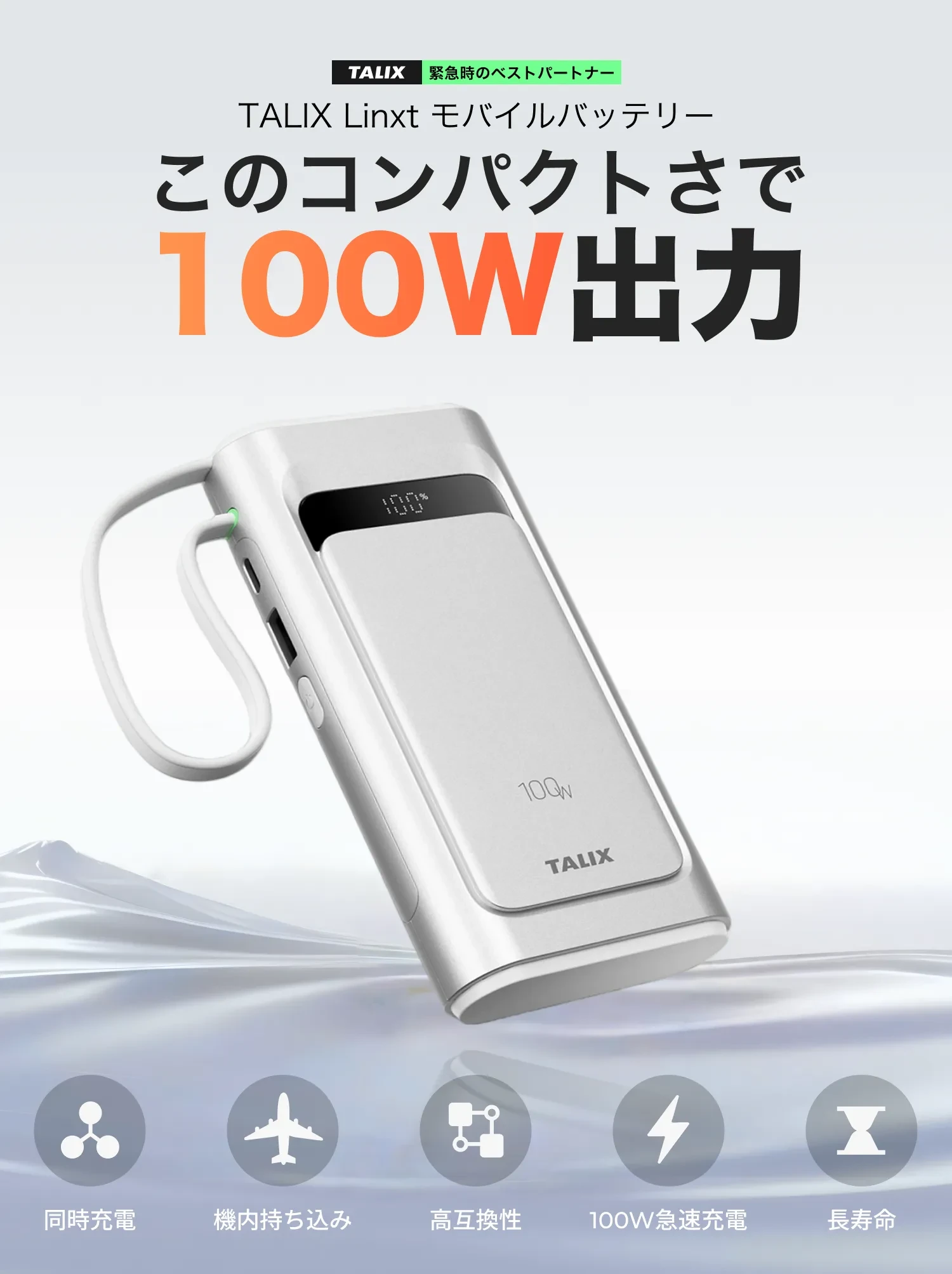 TALIXTALIX Linxt 100W モバイルバッテリー 10000mah・大容量・ノートPC対応・急速充電・Type-C・PD100w・3台同時充電(USB-A×1 USB-C×2)・低電流モード・バッテリー残量表示・コンパクト・PSE技術基準適