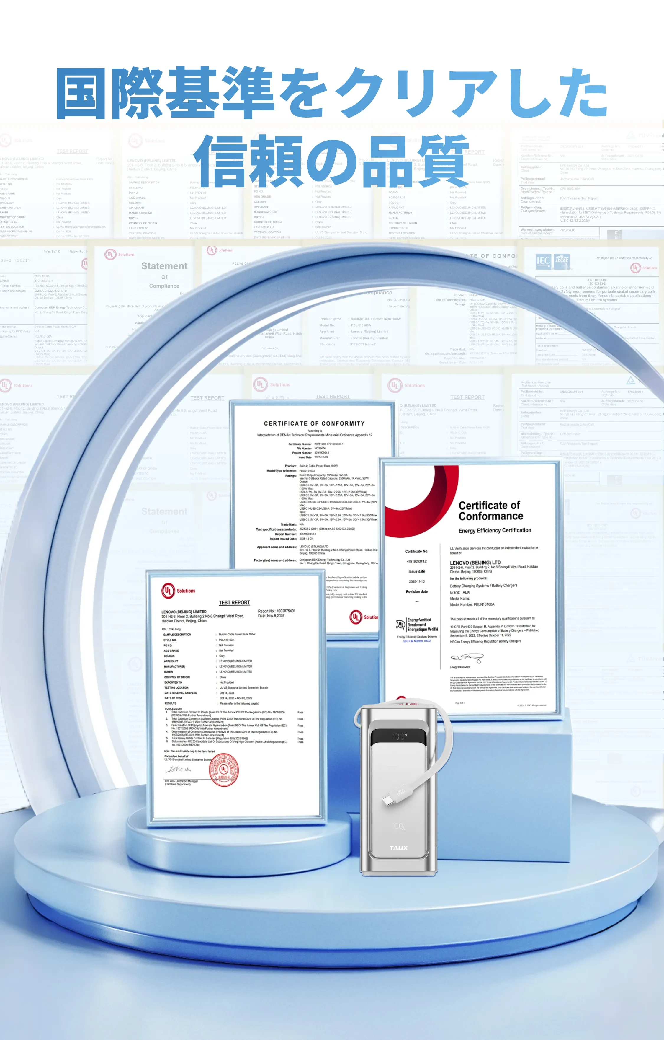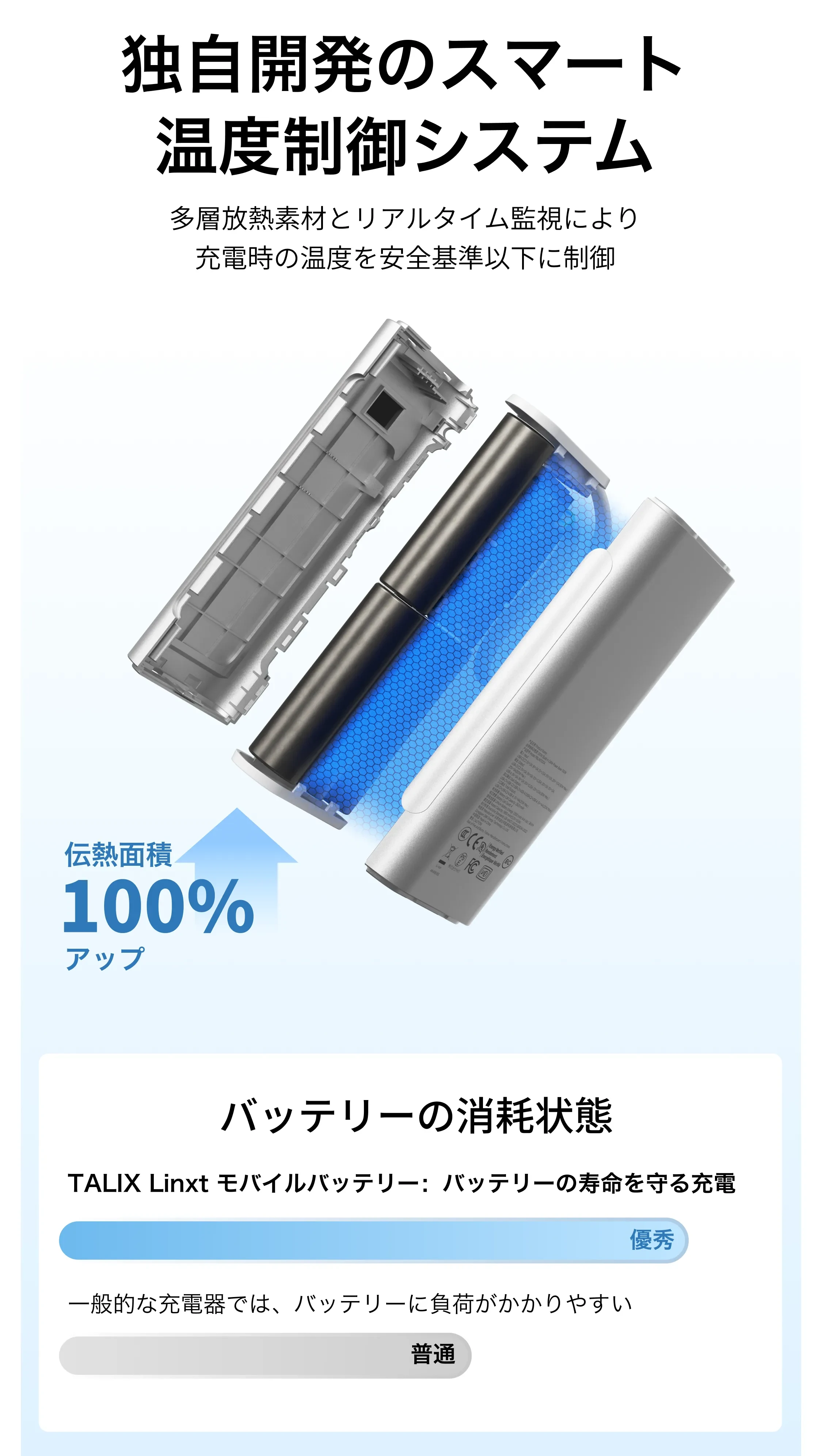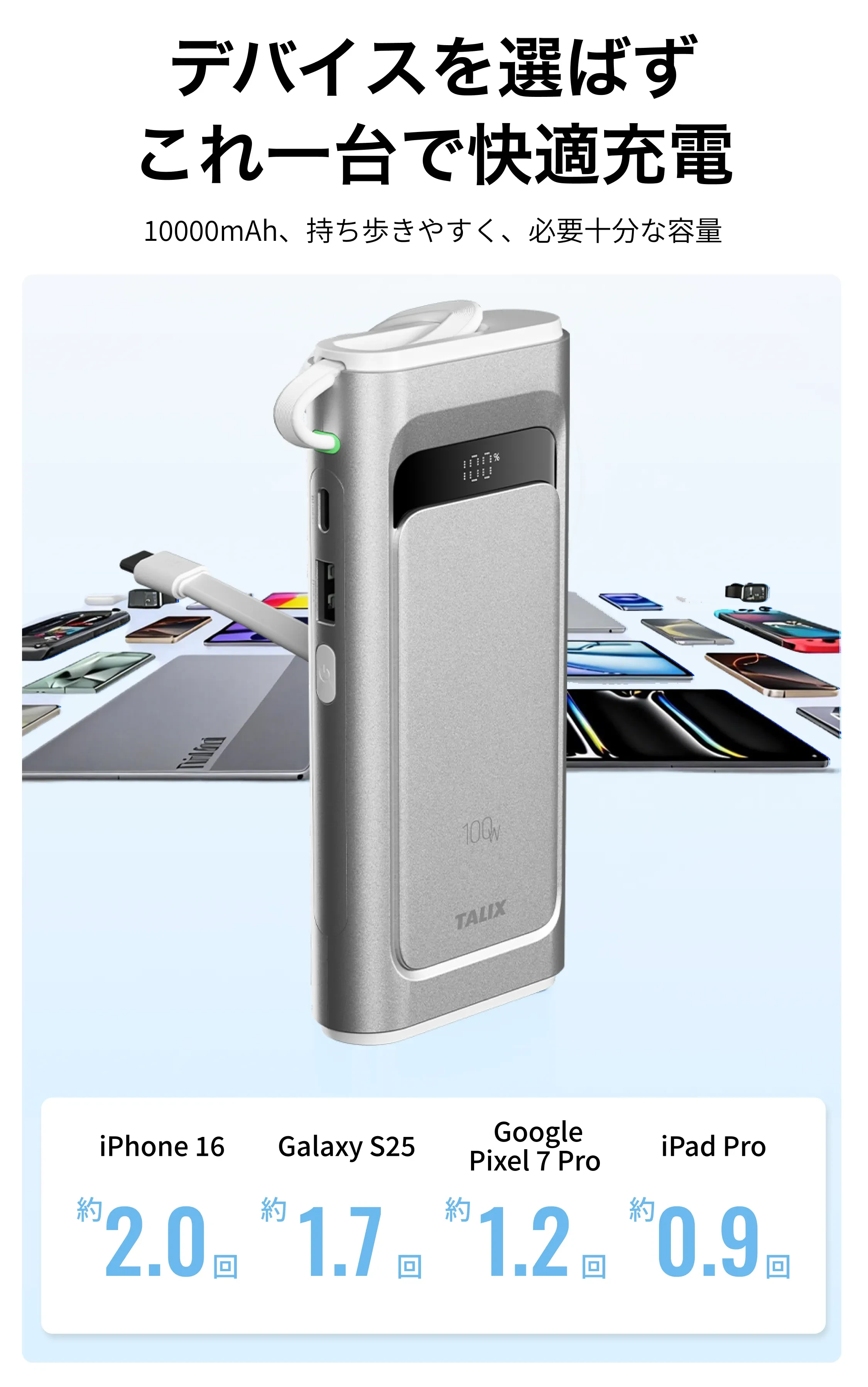 TALIXTALIX Linxt 100W モバイルバッテリー 10000mah・大容量・ノートPC対応・急速充電・Type-C・PD100w・3台同時充電(USB-A×1 USB-C×2)・低電流モード・バッテリー残量表示・コンパクト・PSE技術基準適